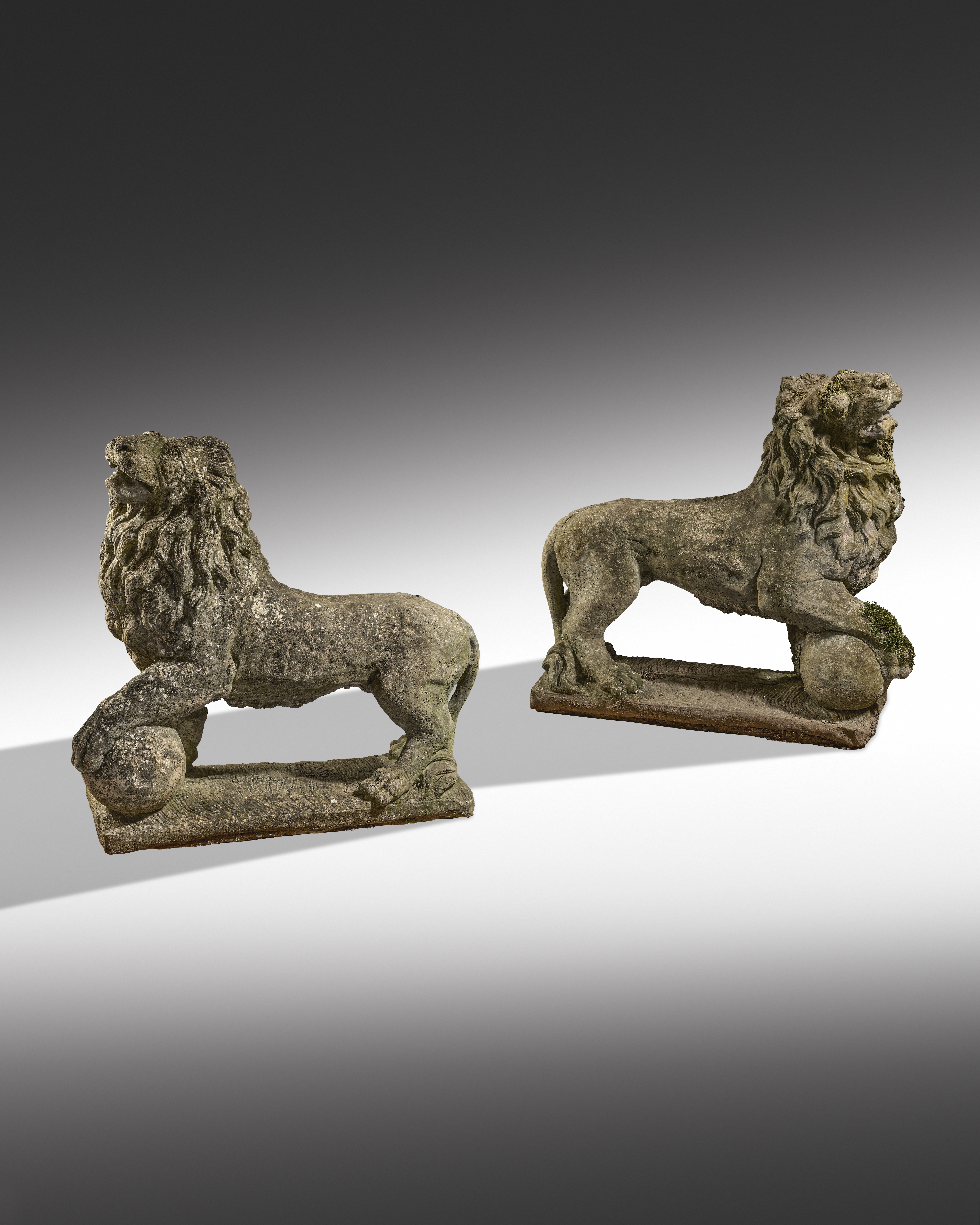 A PAIR OF LARGE COMPOSITION STONE GARDEN MEDICI LIONS