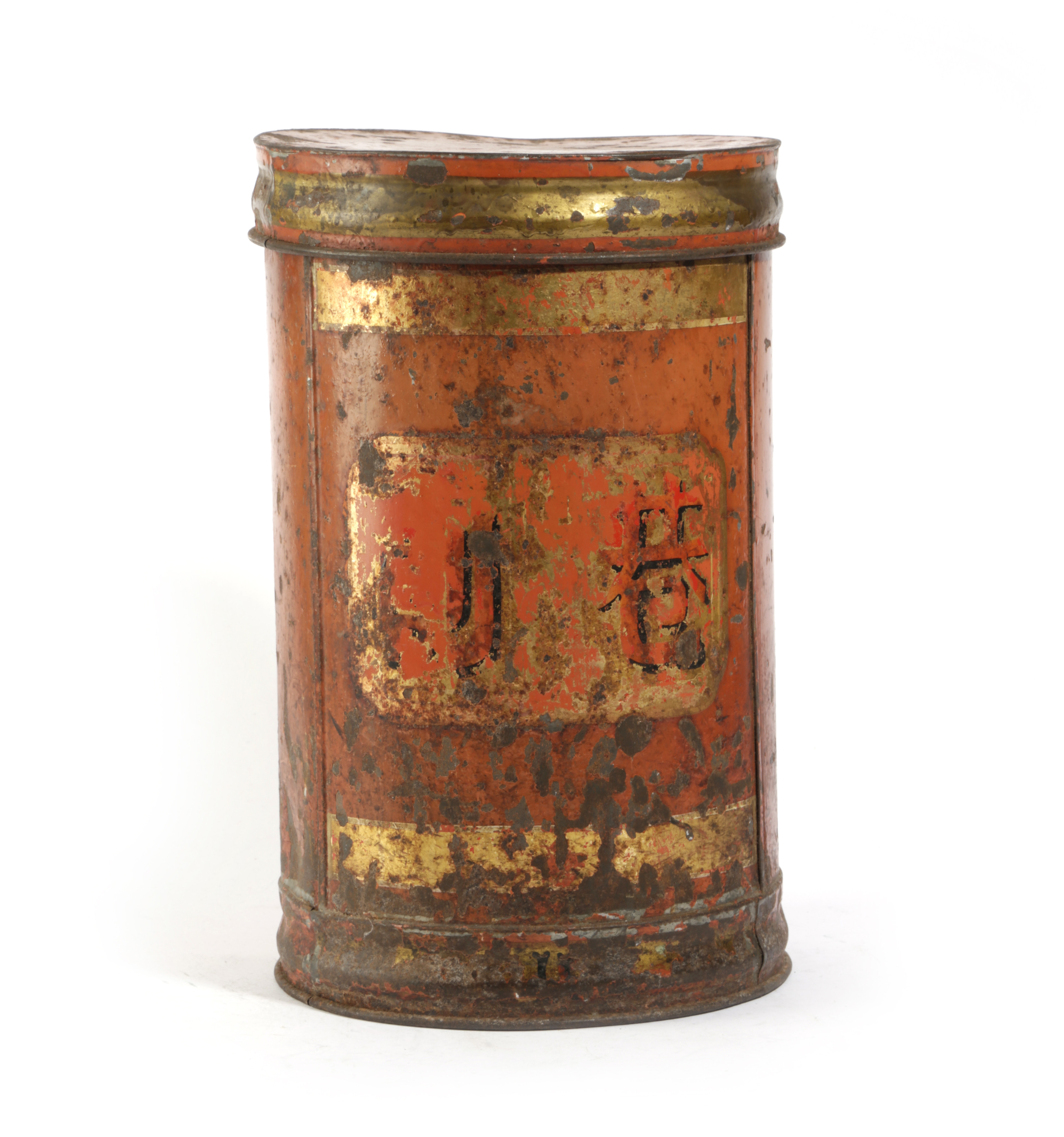 gilt decorated on a red ground with Chinese characters, with lid