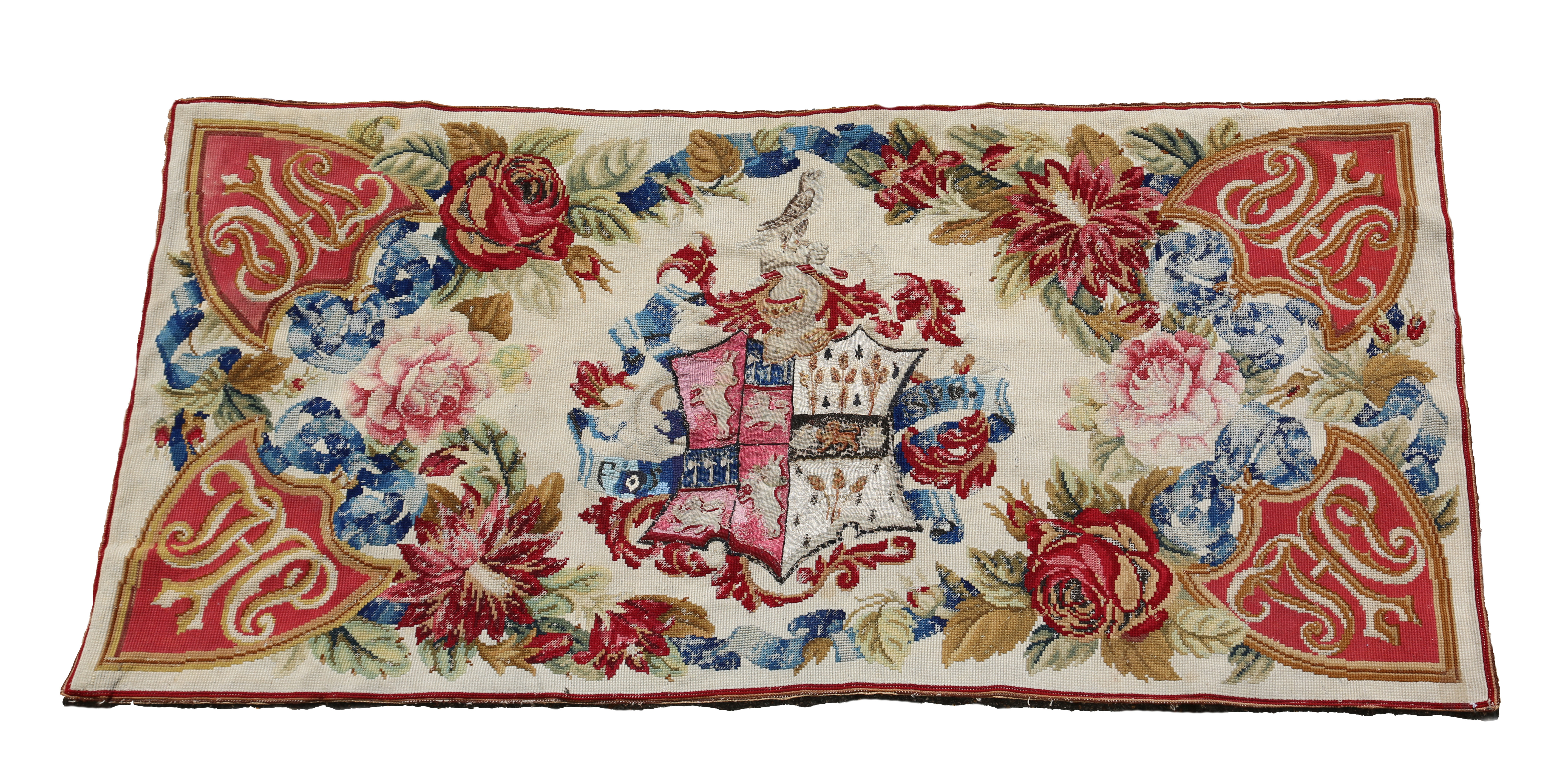 This rug was probably made for John Cleland of Stormont Castle, Co. Down (1836-1893) and his wife Therese Maria, co-heiress of Captain Leland, of Haggerston Castle, Northumberland. John and Therese married in 1859.