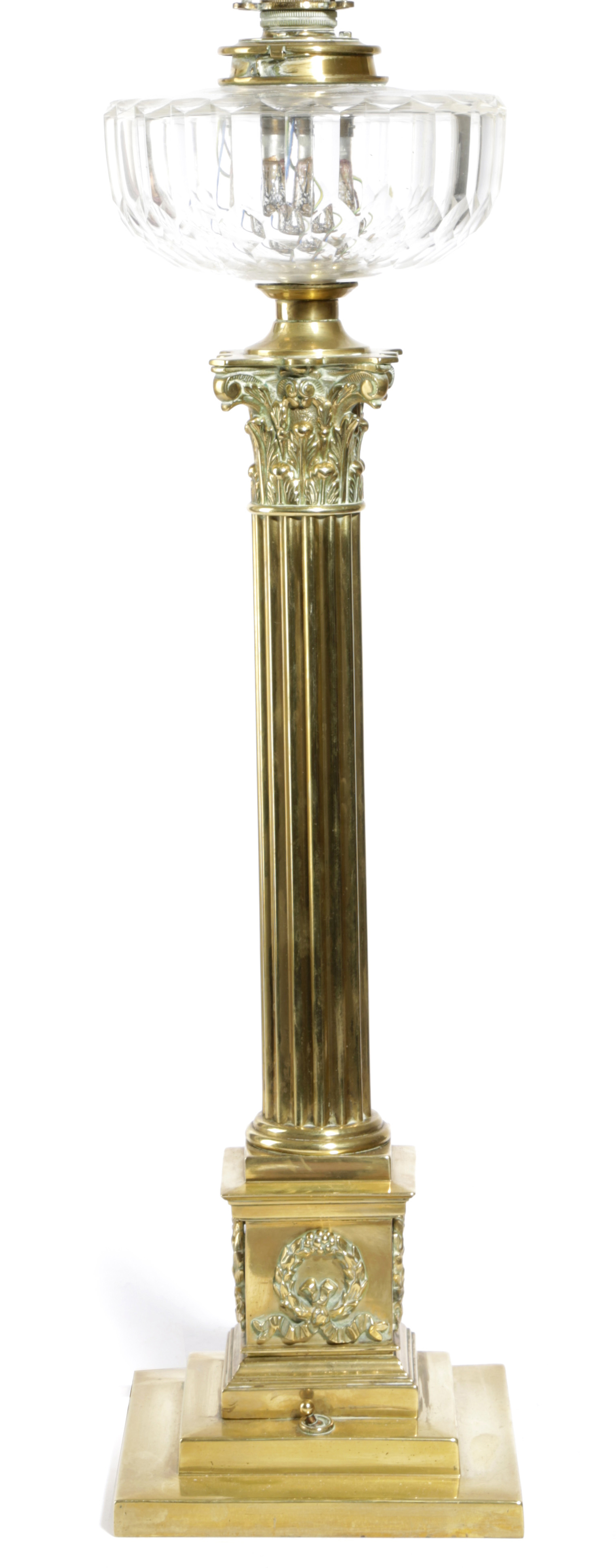 A BRASS CORINTHIAN COLUMN TABLE OIL LAMP