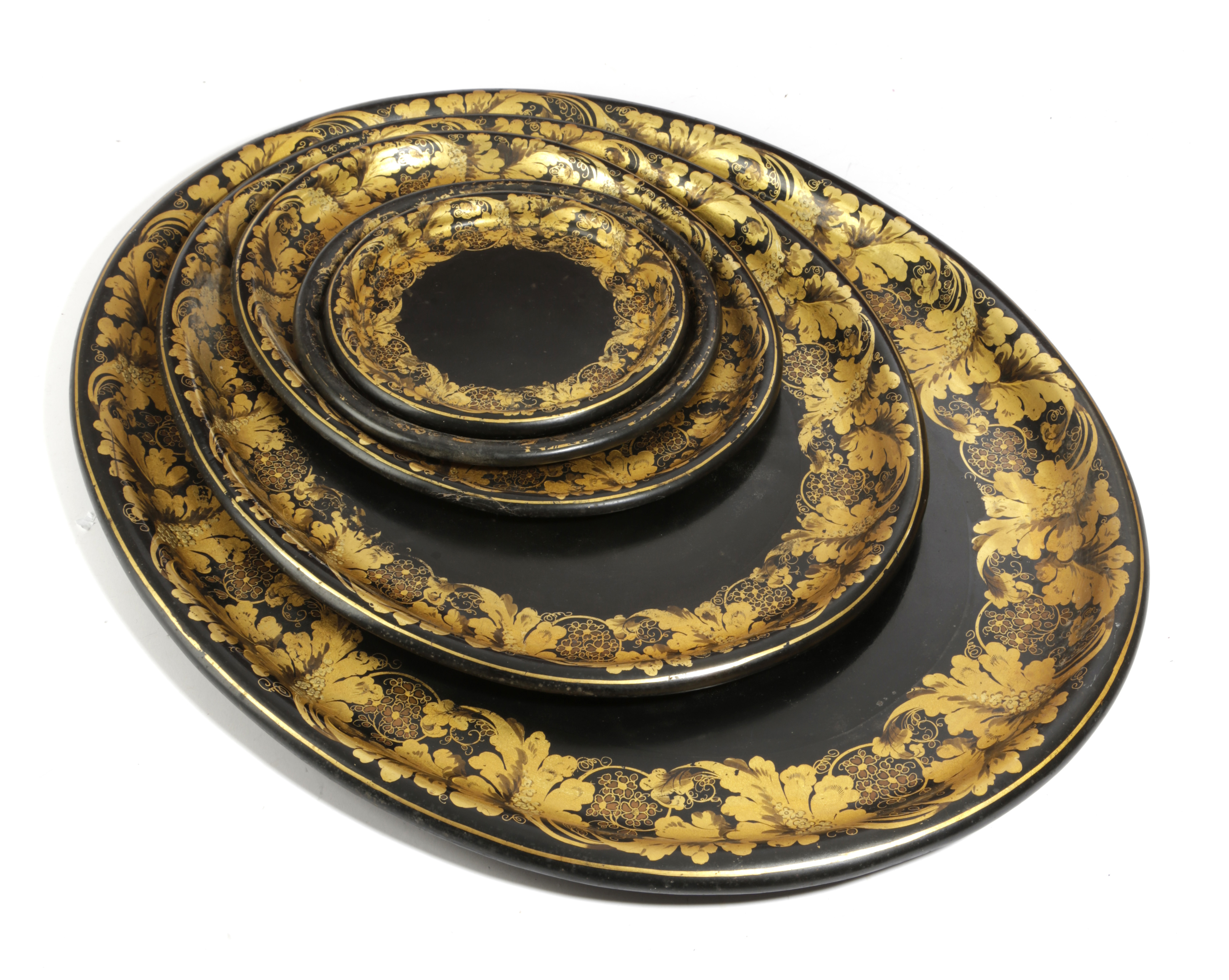 A GRADUATED SET OF FIVE VICTORIAN PAPIER-MÂCHÉ TRAYS