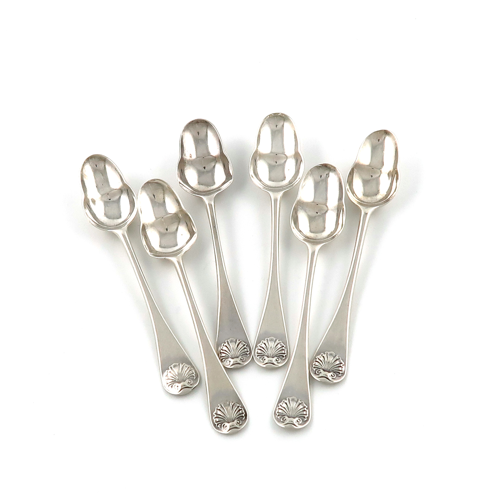 A mid-18th century set of six Hanoverian pattern teaspoons,