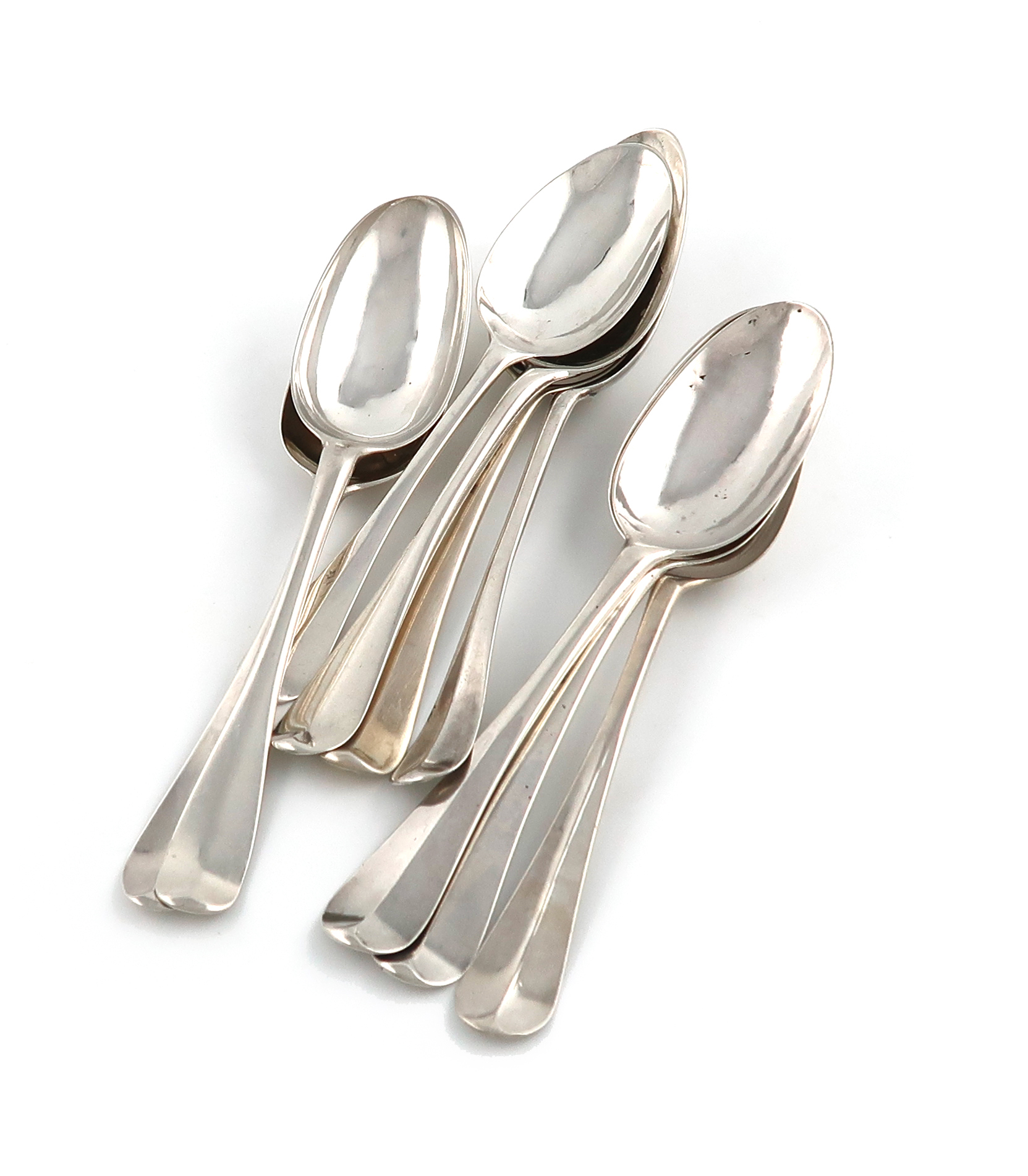 A collection of nine 18th century silver Hanoverian pattern tablespoons,