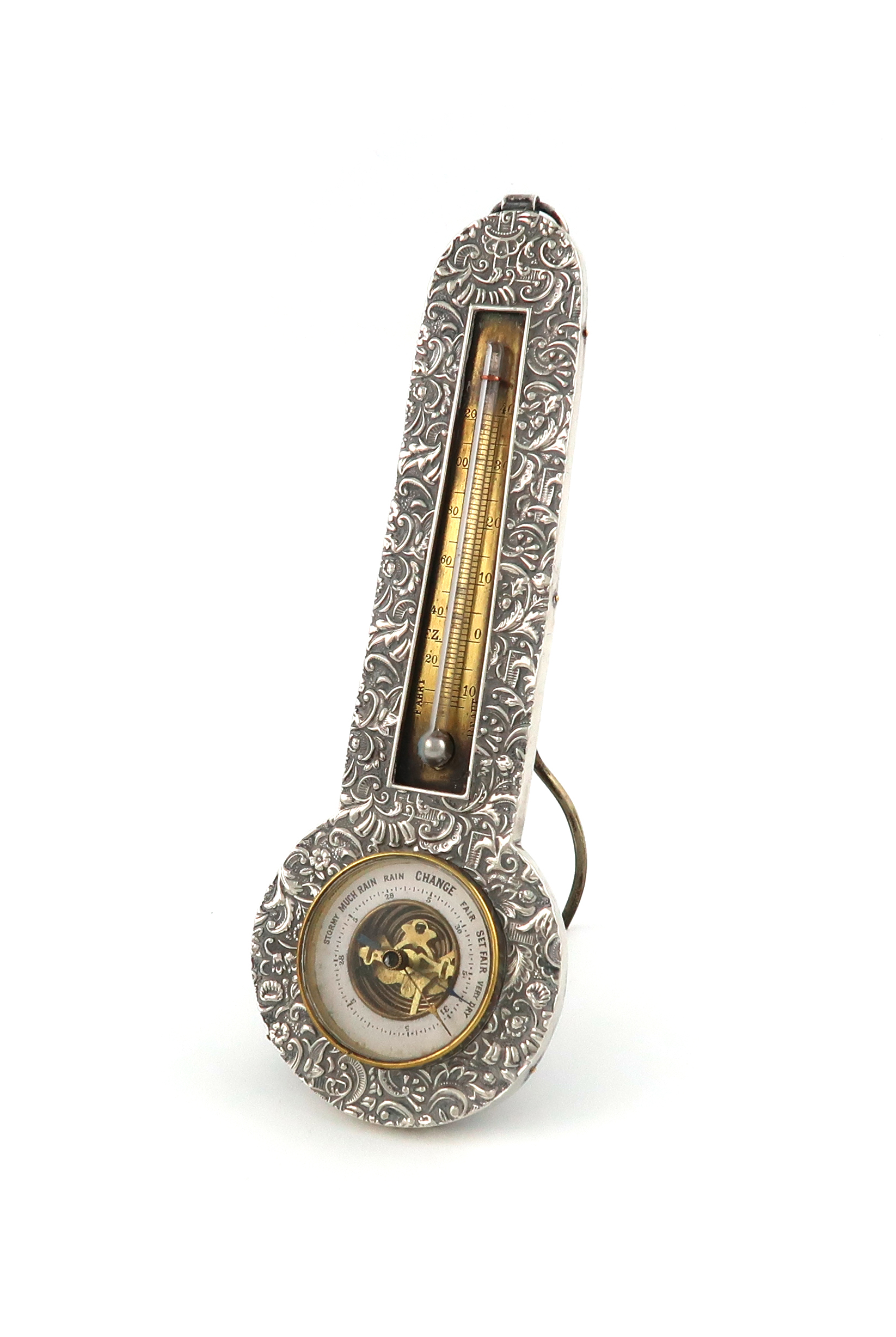 A late-Victorian silver barometer and thermometer,