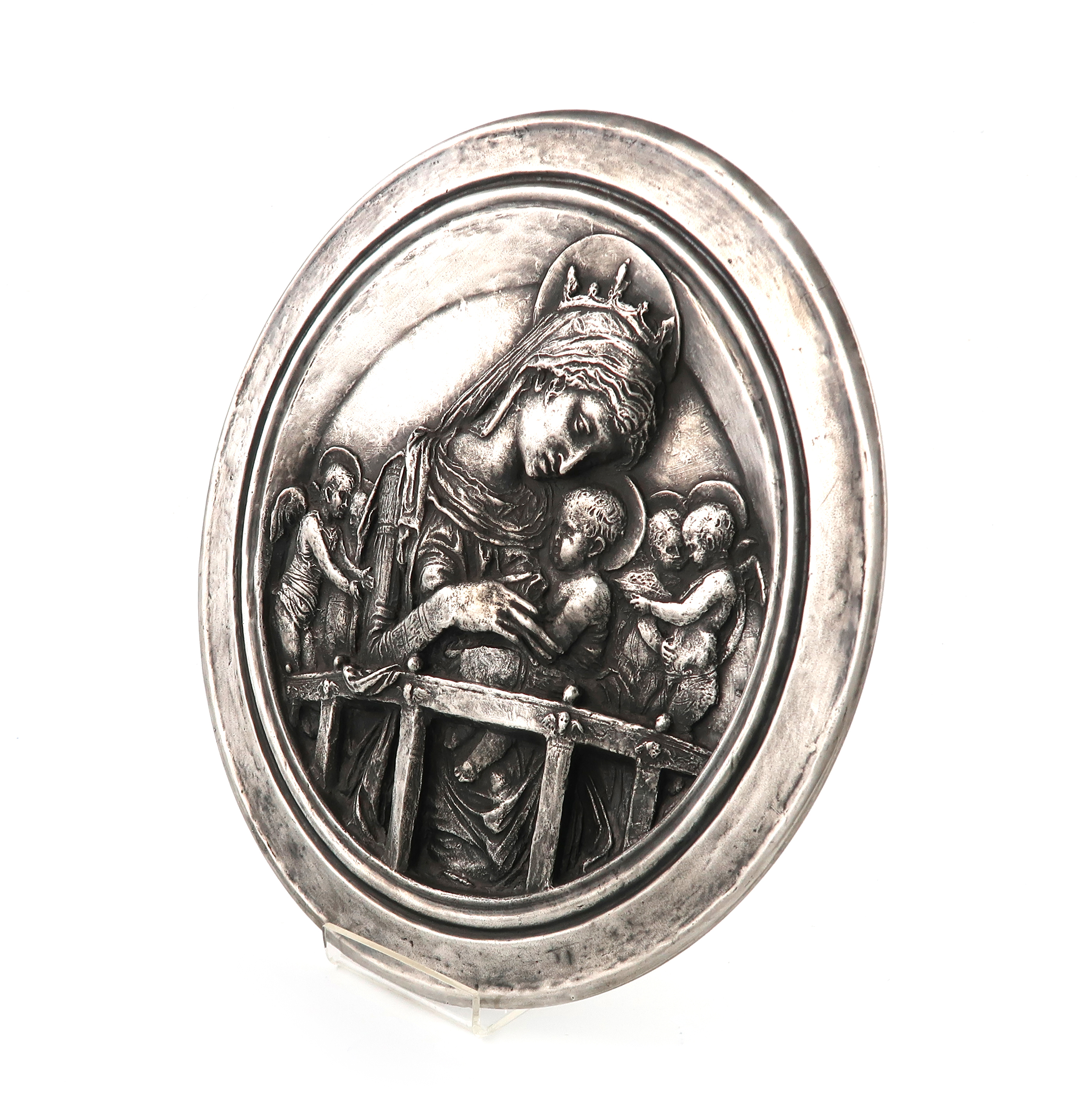 circular form, with a copy of a Cellini roundel, made as a fund raiser for the V and A Museum, filled, diameter 27cm.