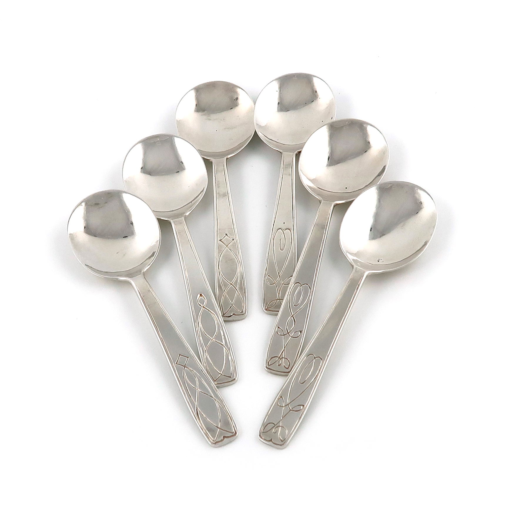 By Donald Fraser, A set of six modern silver fruit spoons,
