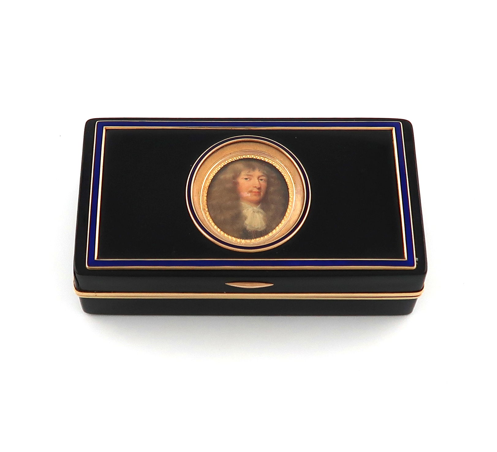 λA late 18th/early 19th century French gold-mounted portrait miniature tortoiseshell snuff box,