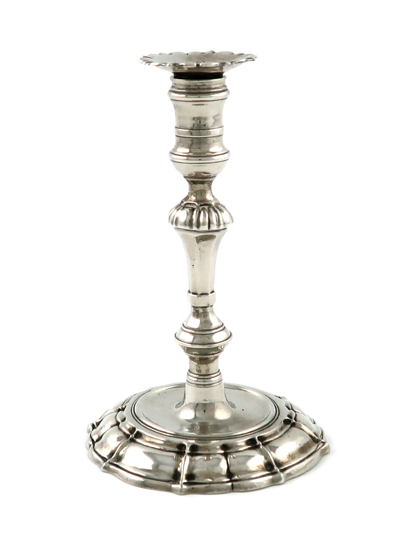 knopped and baluster stem, spool-shaped capital, detachable drip pan, height 11.3cm, approx. weight 3.8oz.