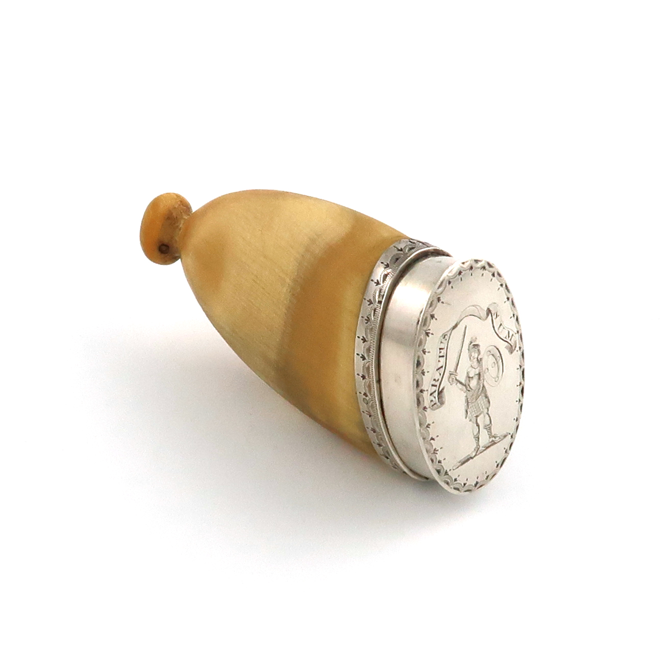 A late 18th century Scottish silver-mounted horn snuff mull,