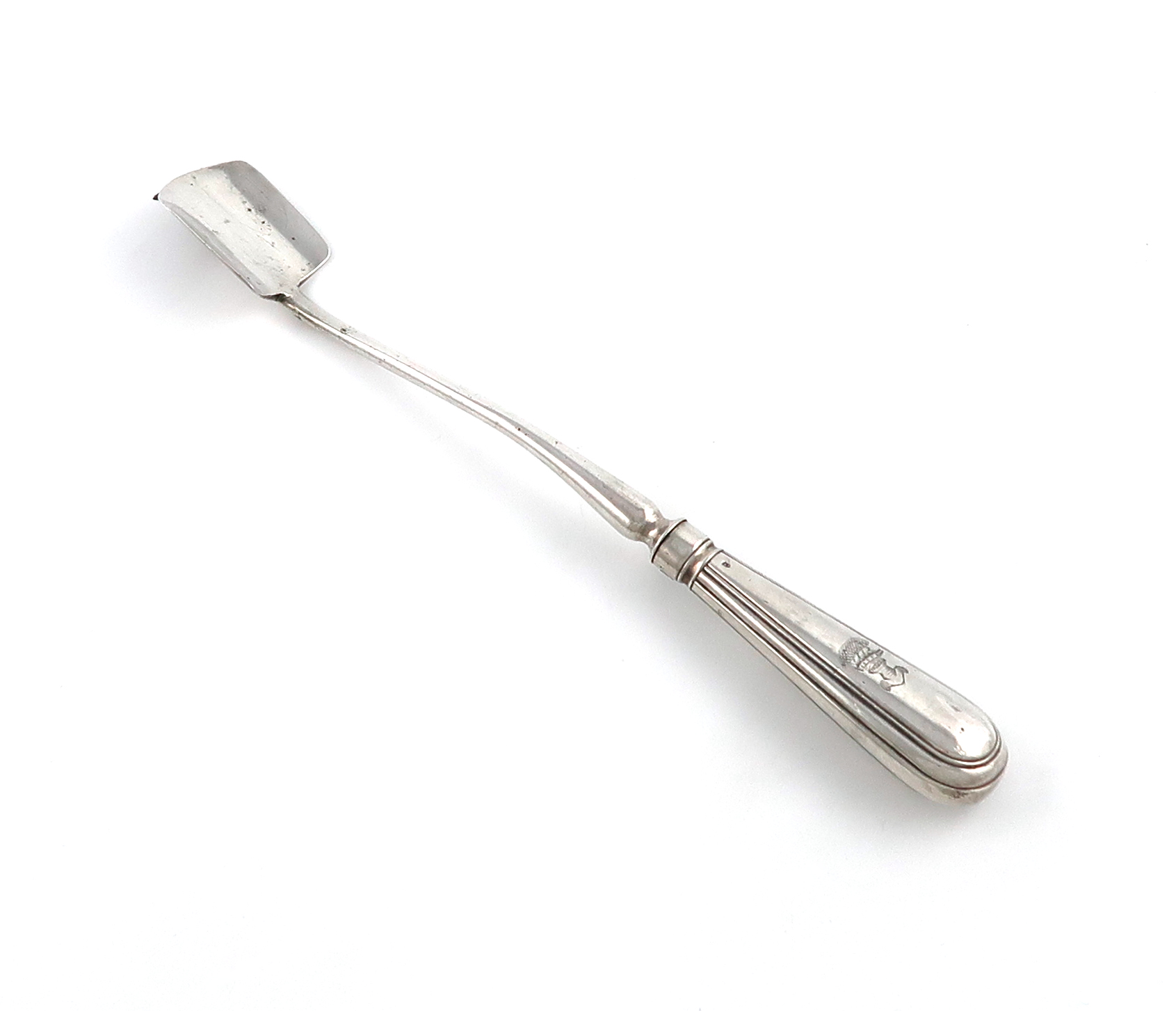 tapering handle, engraved with a crest, plain bowl, length 25cm.