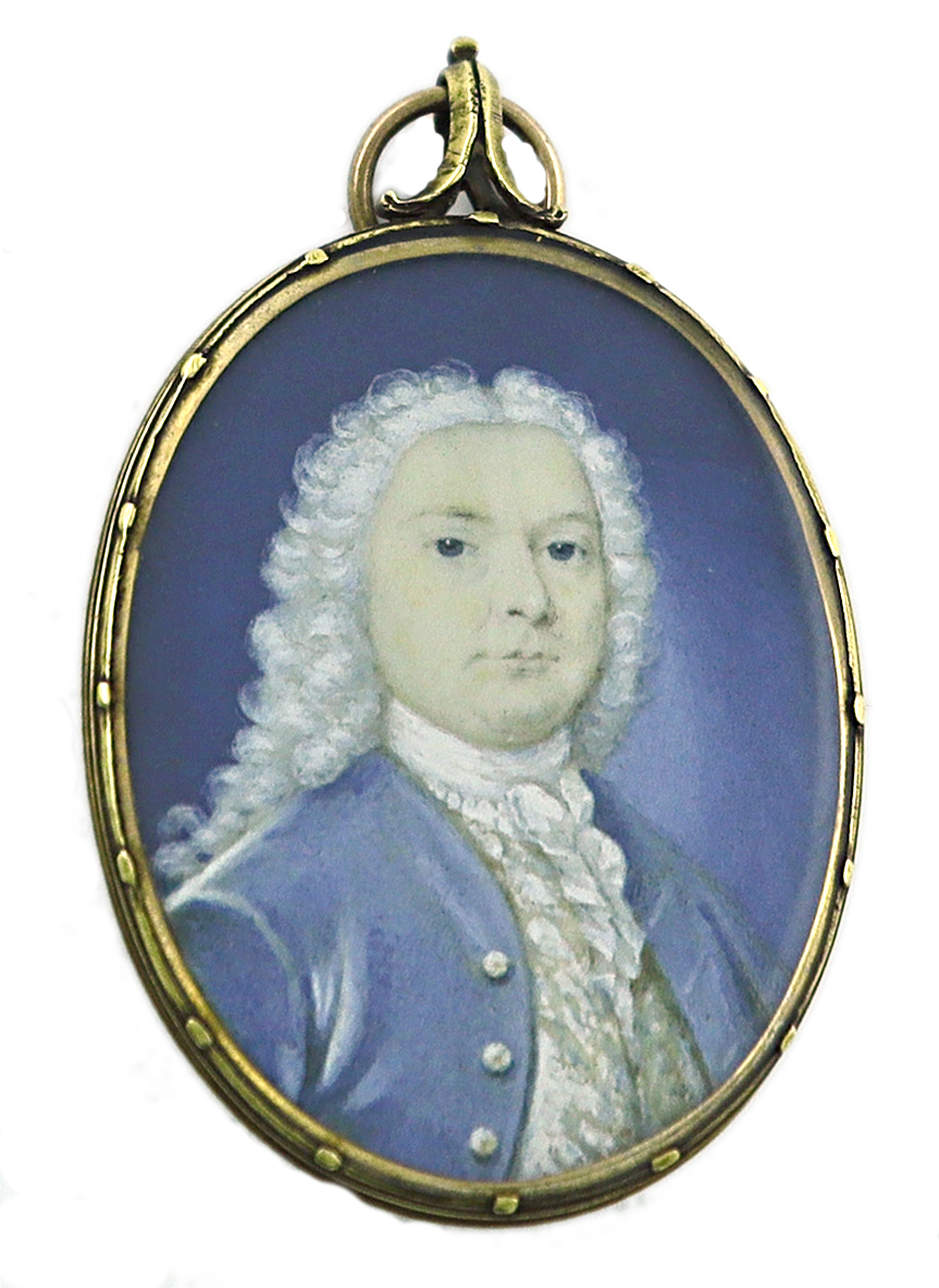 Portrait miniature of a gentleman, traditionally identified as a member of the Richardson family, wearing a blue coat and long wig