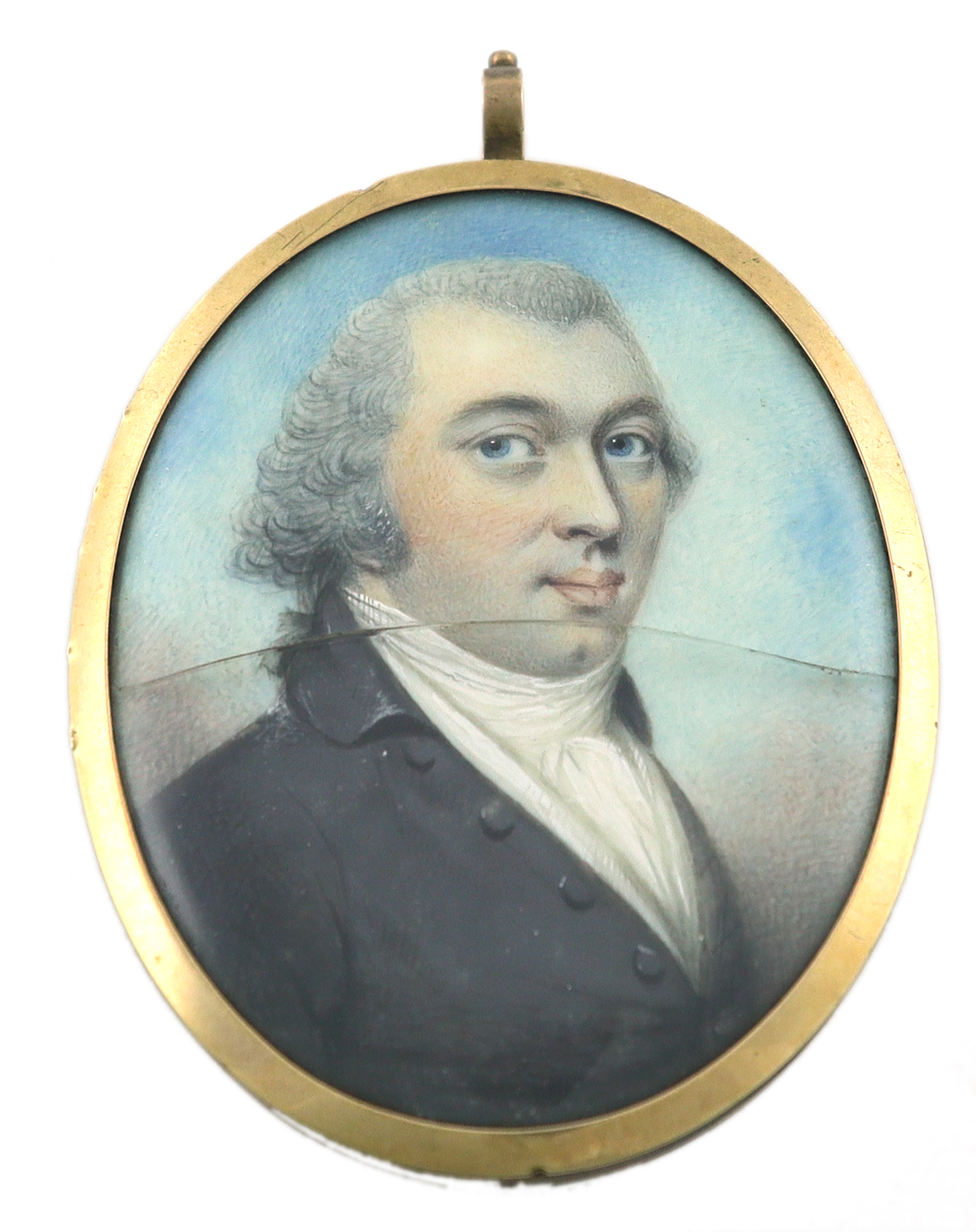 Portrait miniature of a gentleman wearing a black coat, his powdered hair en queue; Portrait miniature of a lady wearing a white dress and bonnet