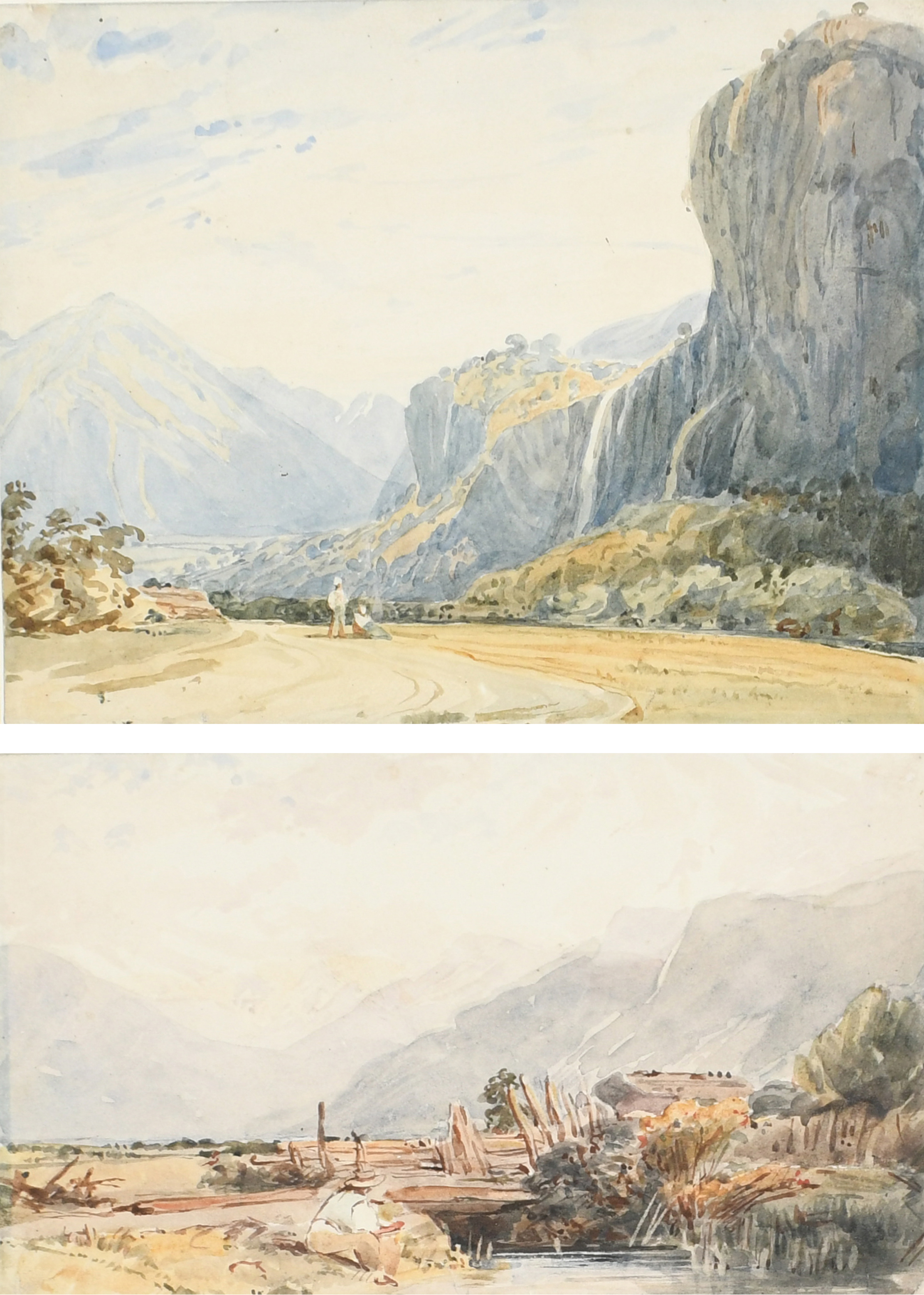 Landscape with figures on the road in the Jura Mountains; Mountainous landscape with a figure by a stream