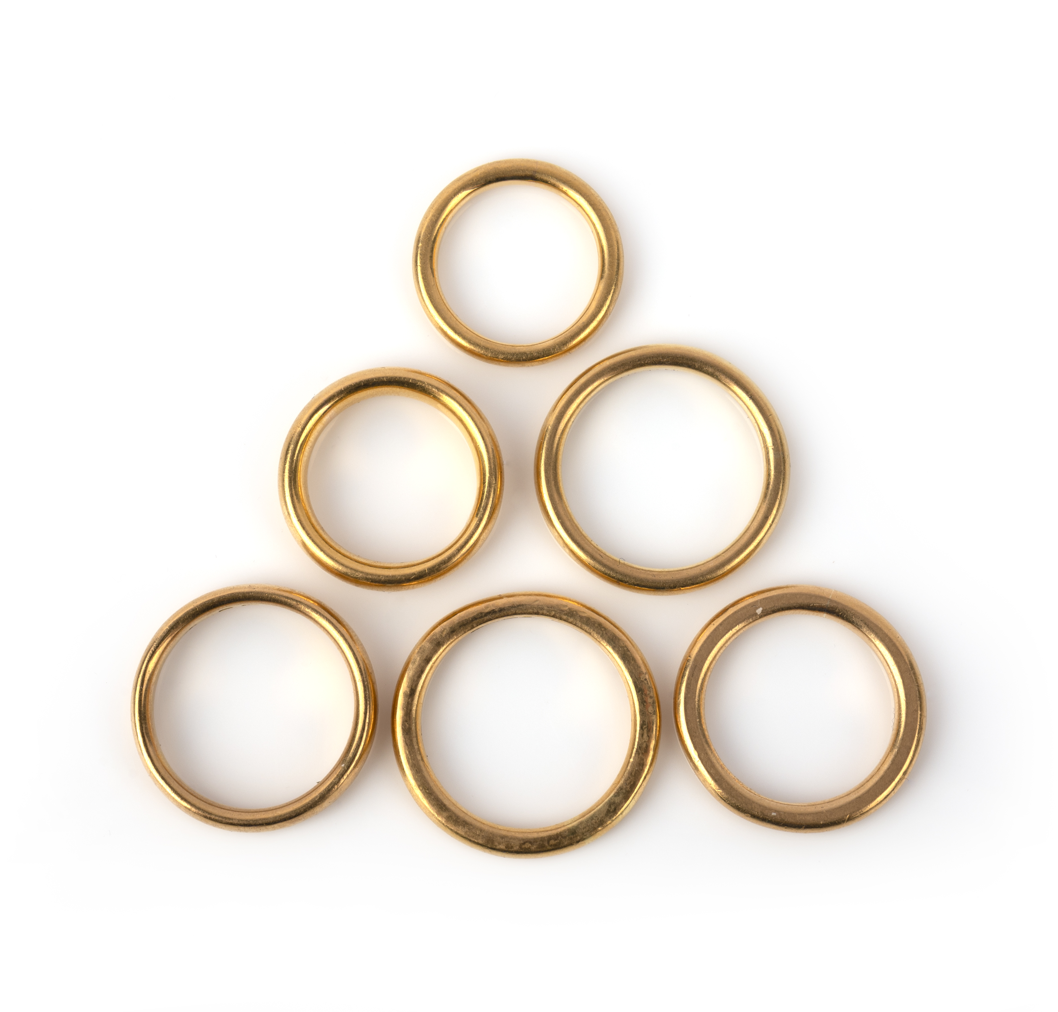 Six gold wedding bands, each of plain design, sizes J-U, British hallmarks for 22ct gold, combined gross weight 51 grams