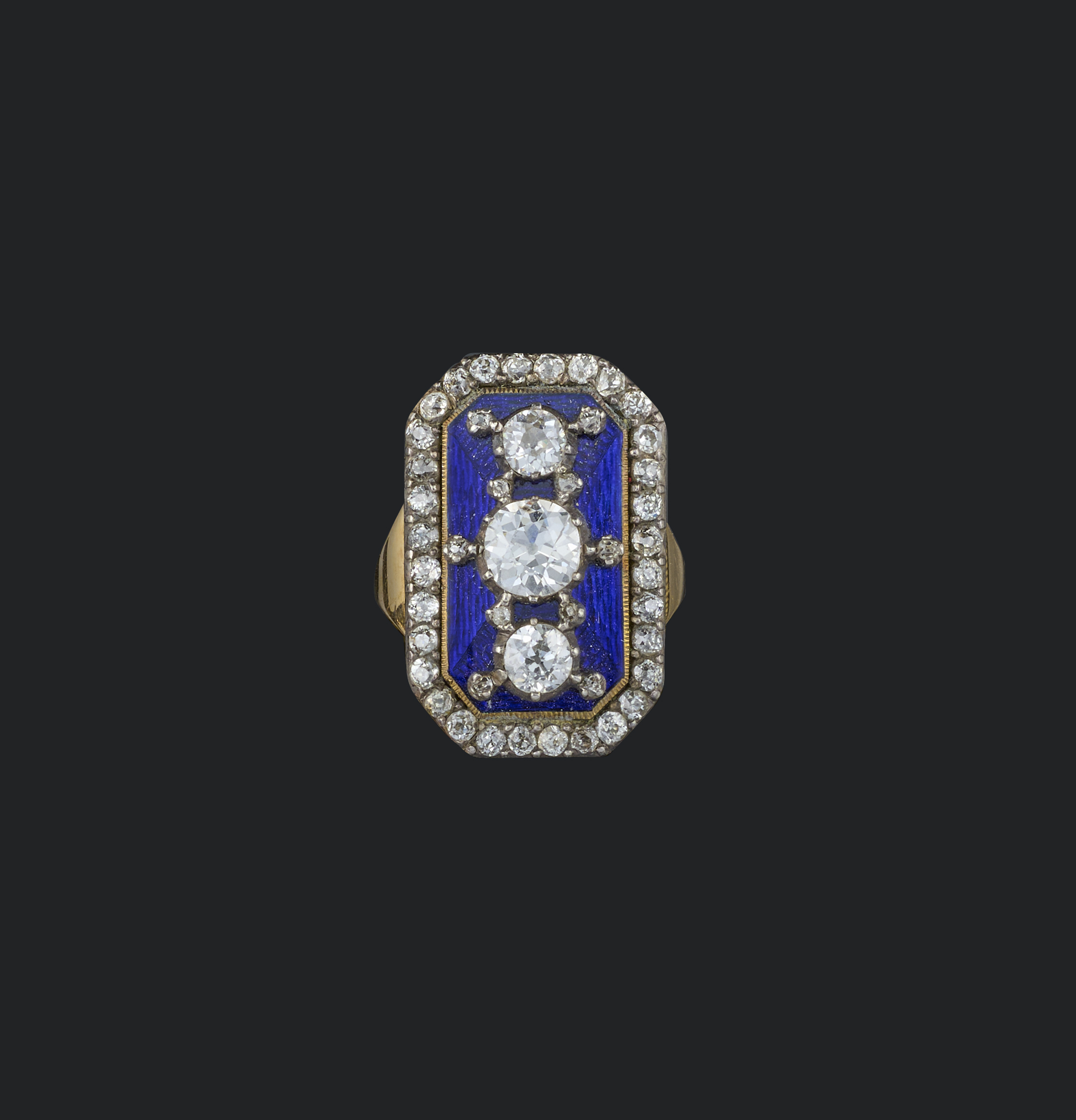 A diamond and blue glass ring, 'bague au firmament', late 18th century