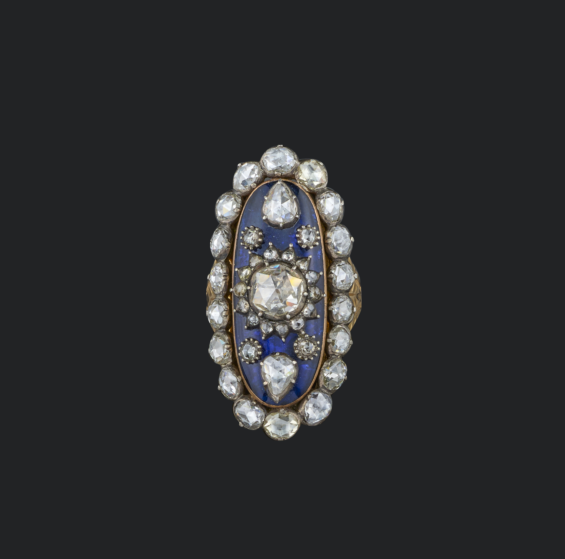 A diamond and blue glass ring, 'bague au firmament', late 18th century