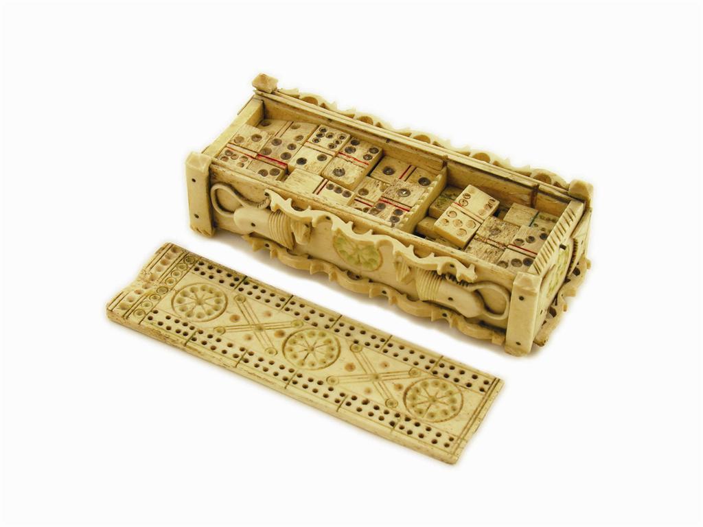 A 19th century Napoleonic prisoner carved bone dominoes casket