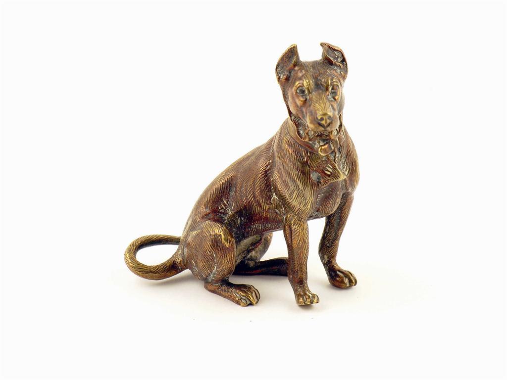 A bronze model of a seated dog, 2.75in (7cm) h.