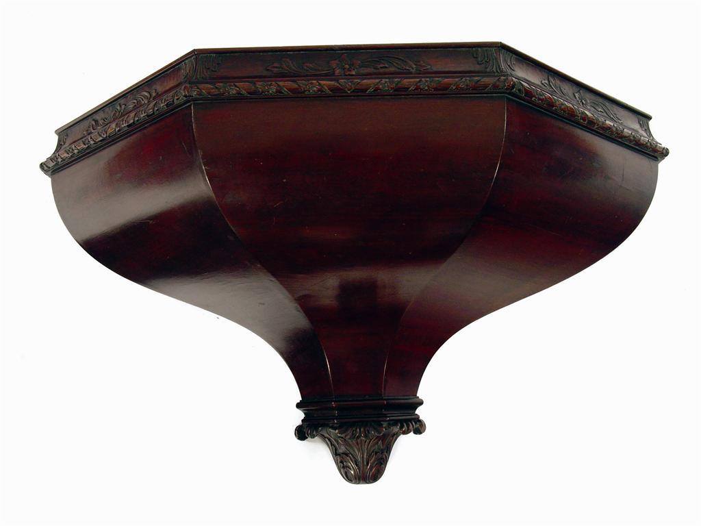 An Edwardian carved mahogany large bracket, 16.5in (42cm) h, 29in (73.5cm) w, 14.5in (37cm) d.