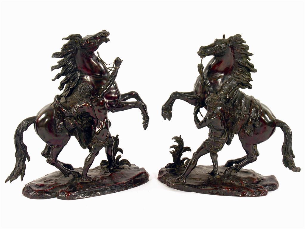 After Coustou. A pair bronze Marly horses