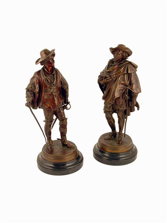 Jean Jules Salmson (1823-1902), French. A pair of bronze figures, Anthony Van Dyke, on circular bases signed, with turned slate plinths, 16.5in (42cm) h. (2)