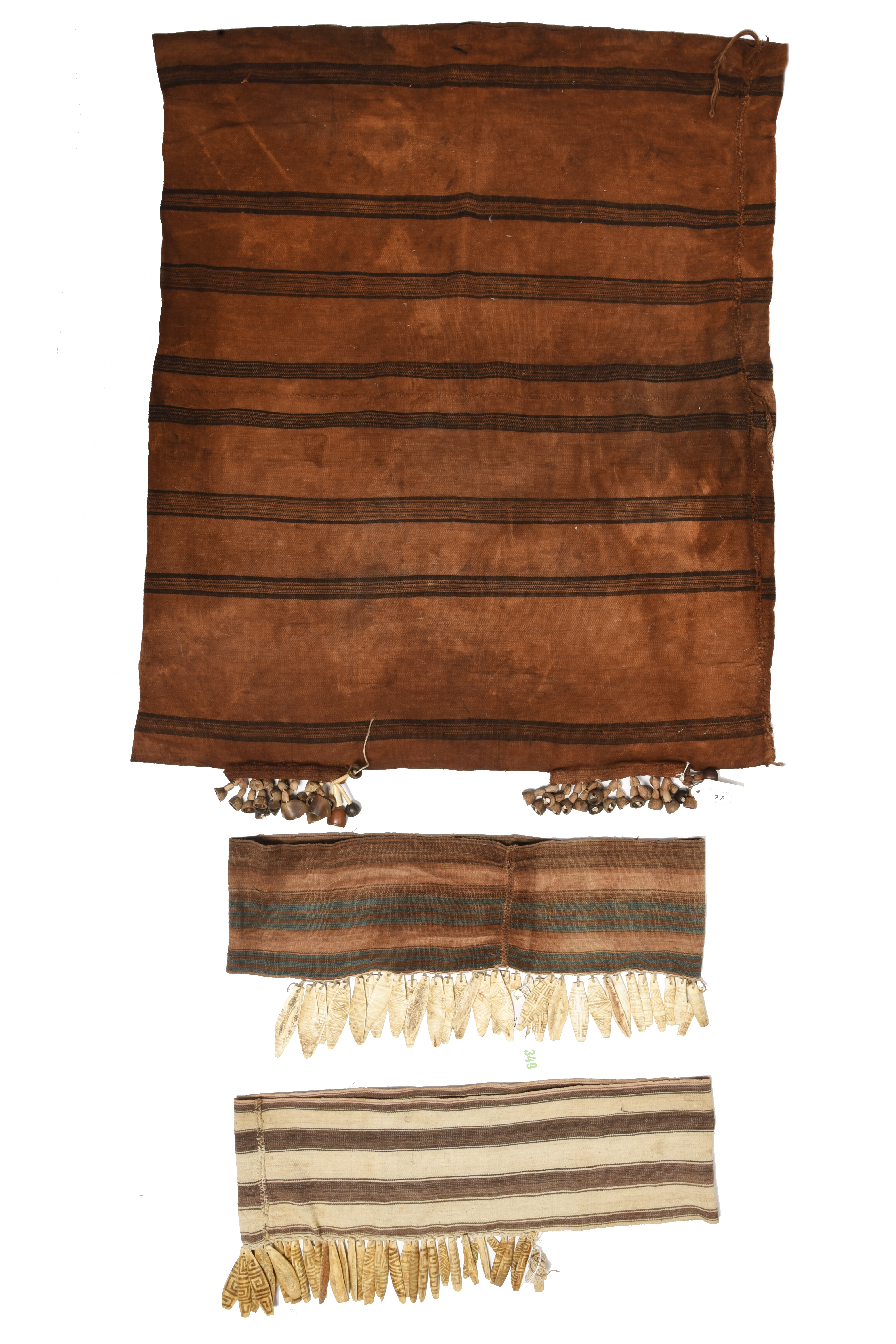 and a poncho, with nut shells and bones to the shoulders, 91cm long. (3)