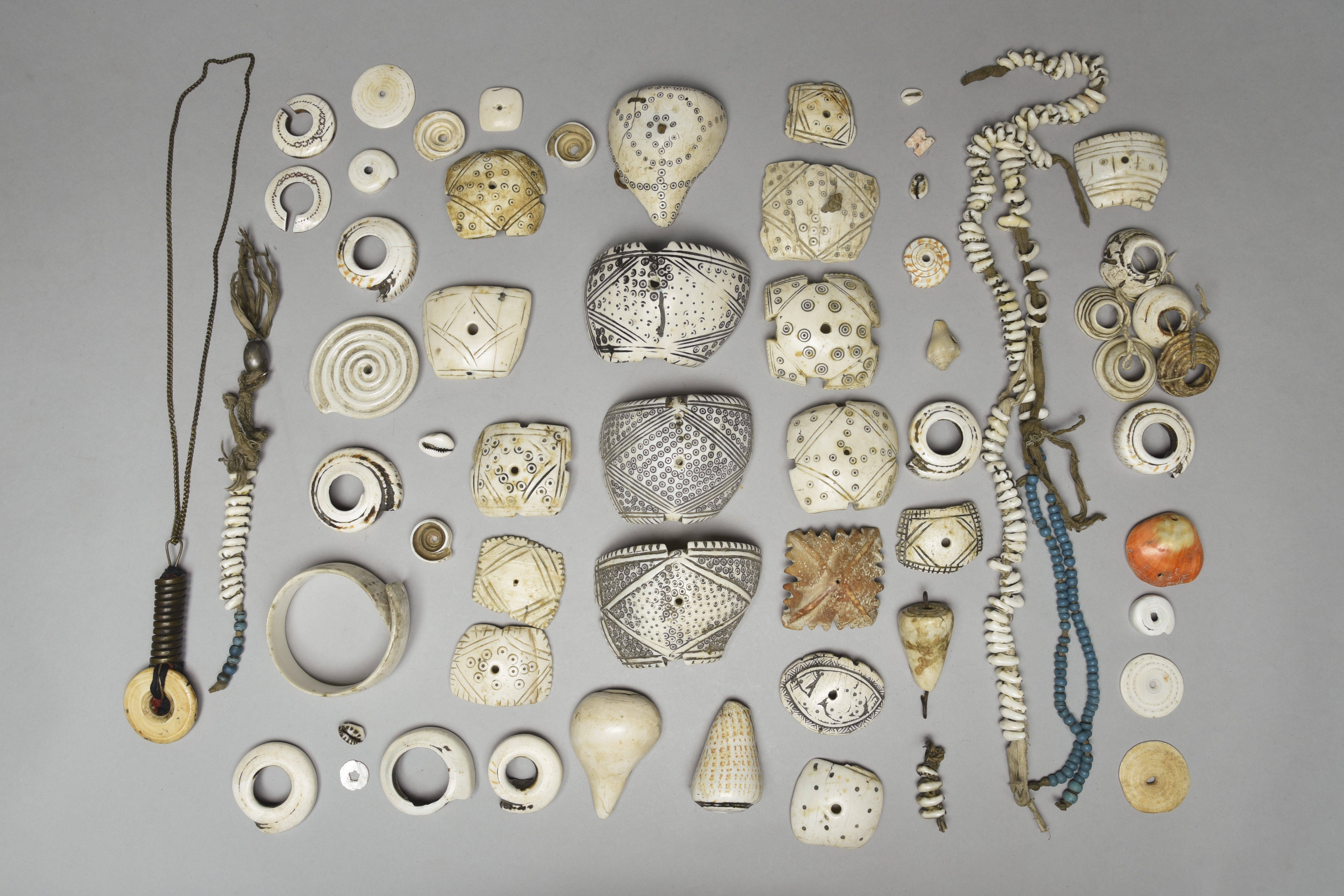 with linear, circle and dot decoration, and other shell ornaments, Oceanic and Africa. (qty)