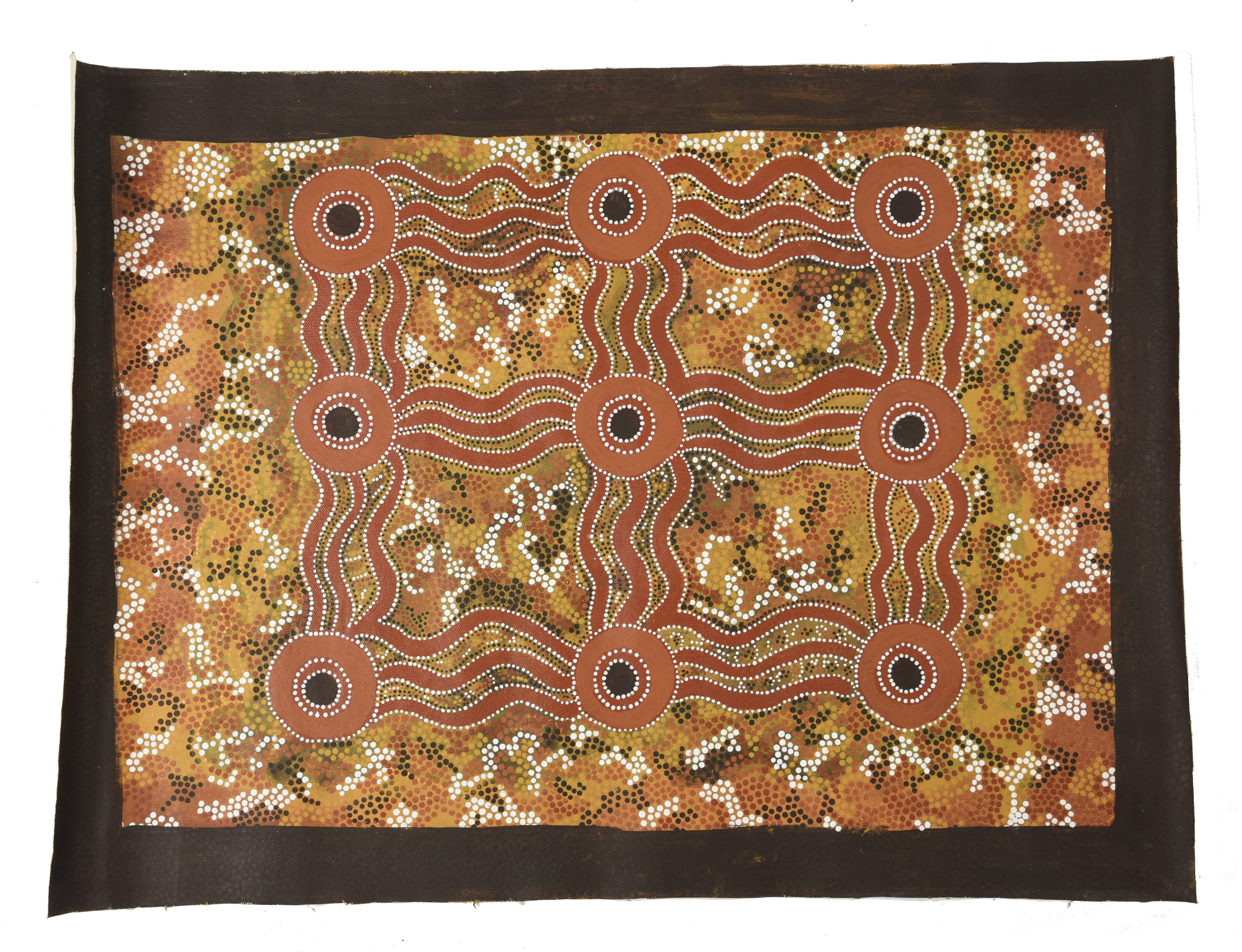 The back inscribed Bush Plum: It is grown around the central Australia, it is my great grandfather + father around Devils Marble. It stretches one root to a root. Barbara Nangala Foster, with Burnt Shirt Gallery stamp.