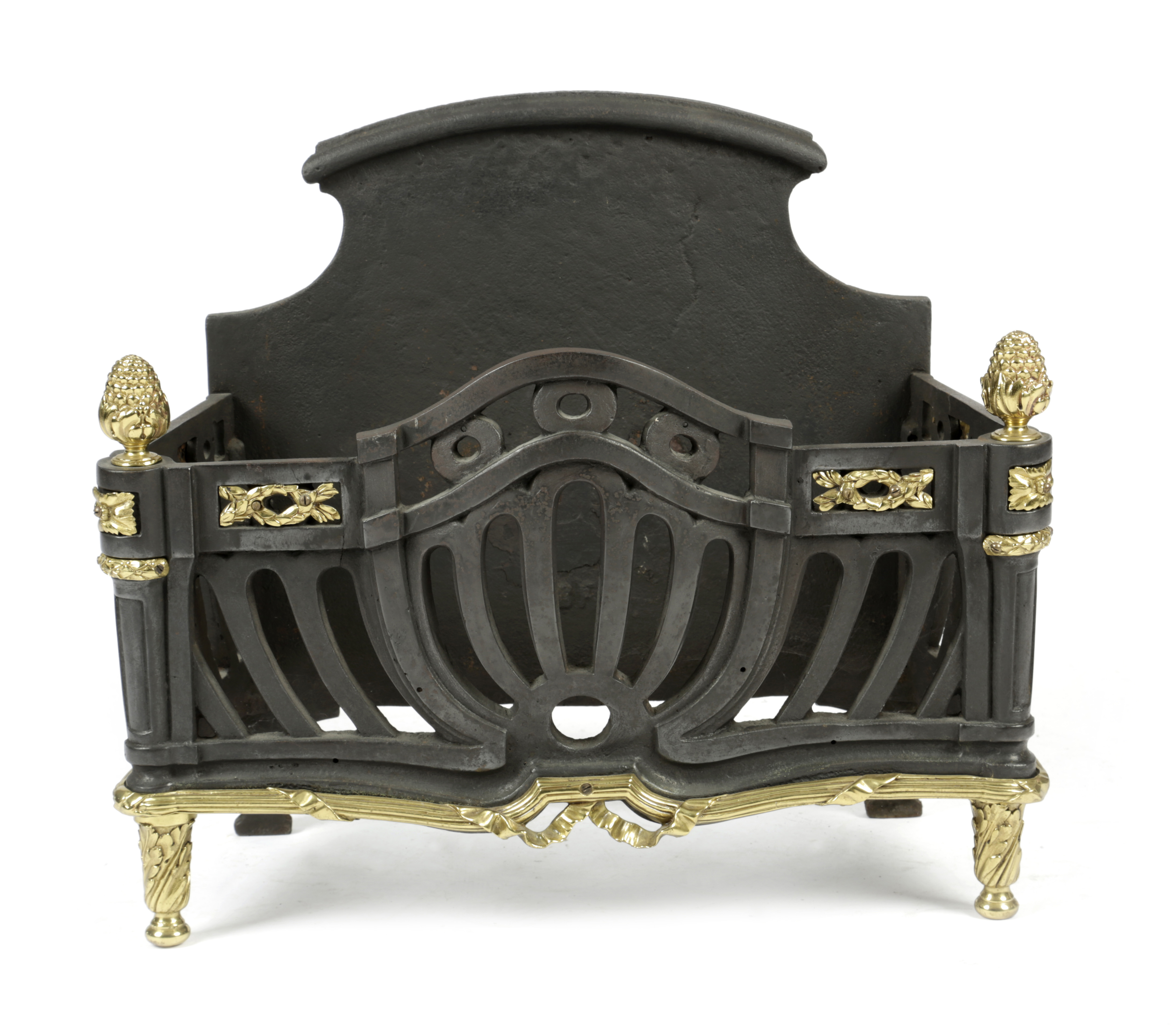 the pierced basket with gilt brass mounts and cone finials