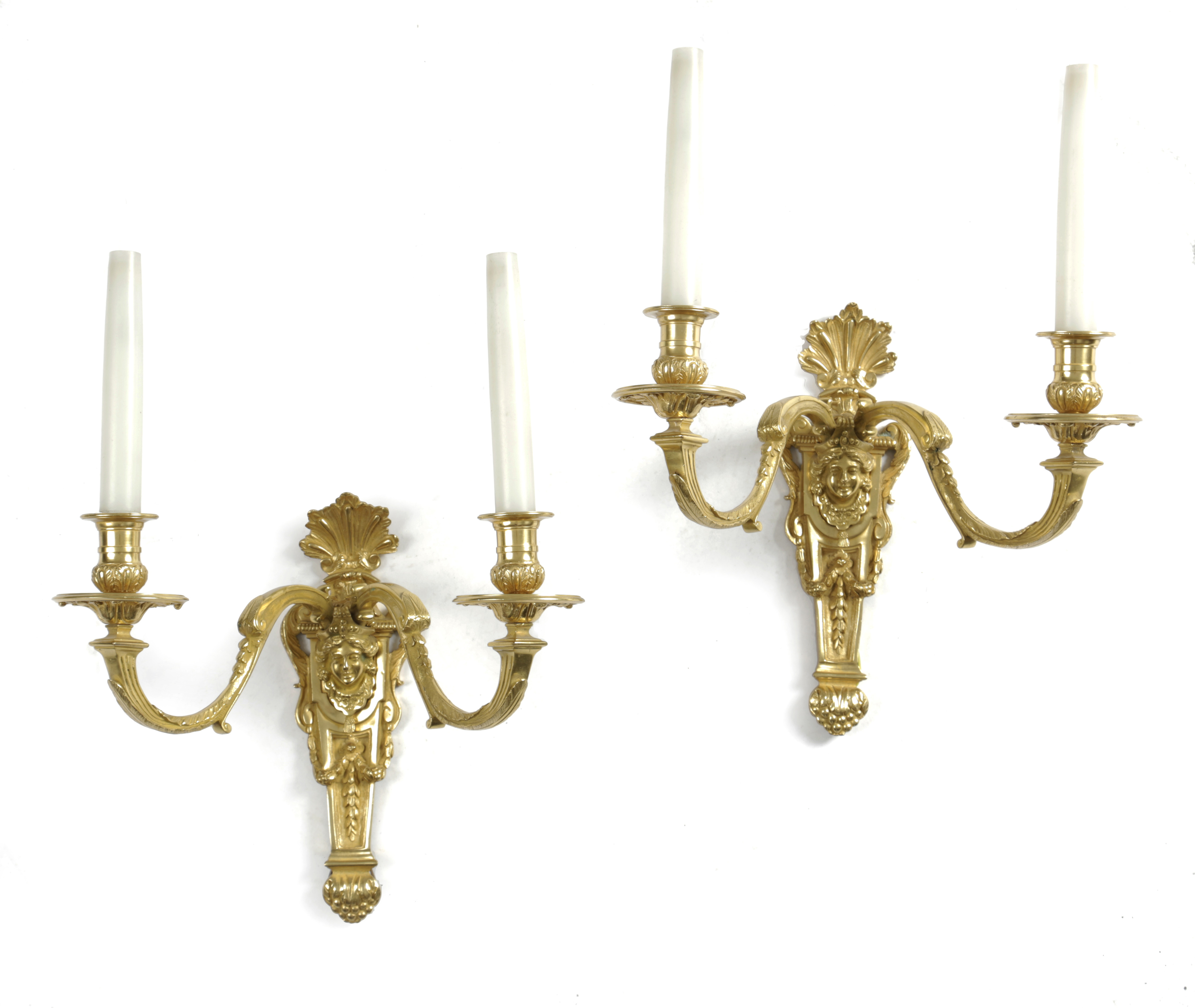 A PAIR OF FRENCH ORMOLU WALL LIGHTS