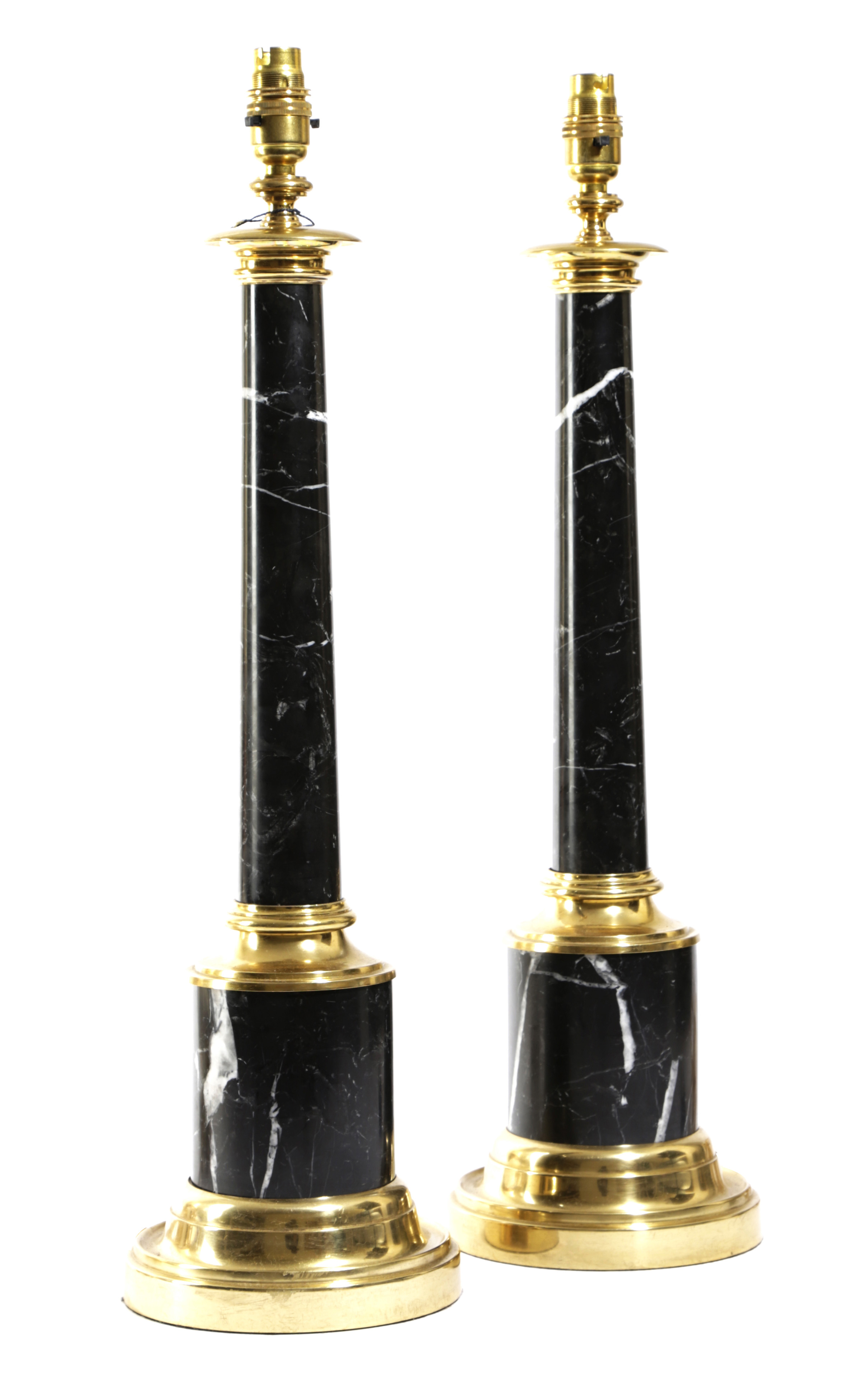 A PAIR OF BLACK MARBLE AND GILT BRASS MOUNTED TABLE LAMPS