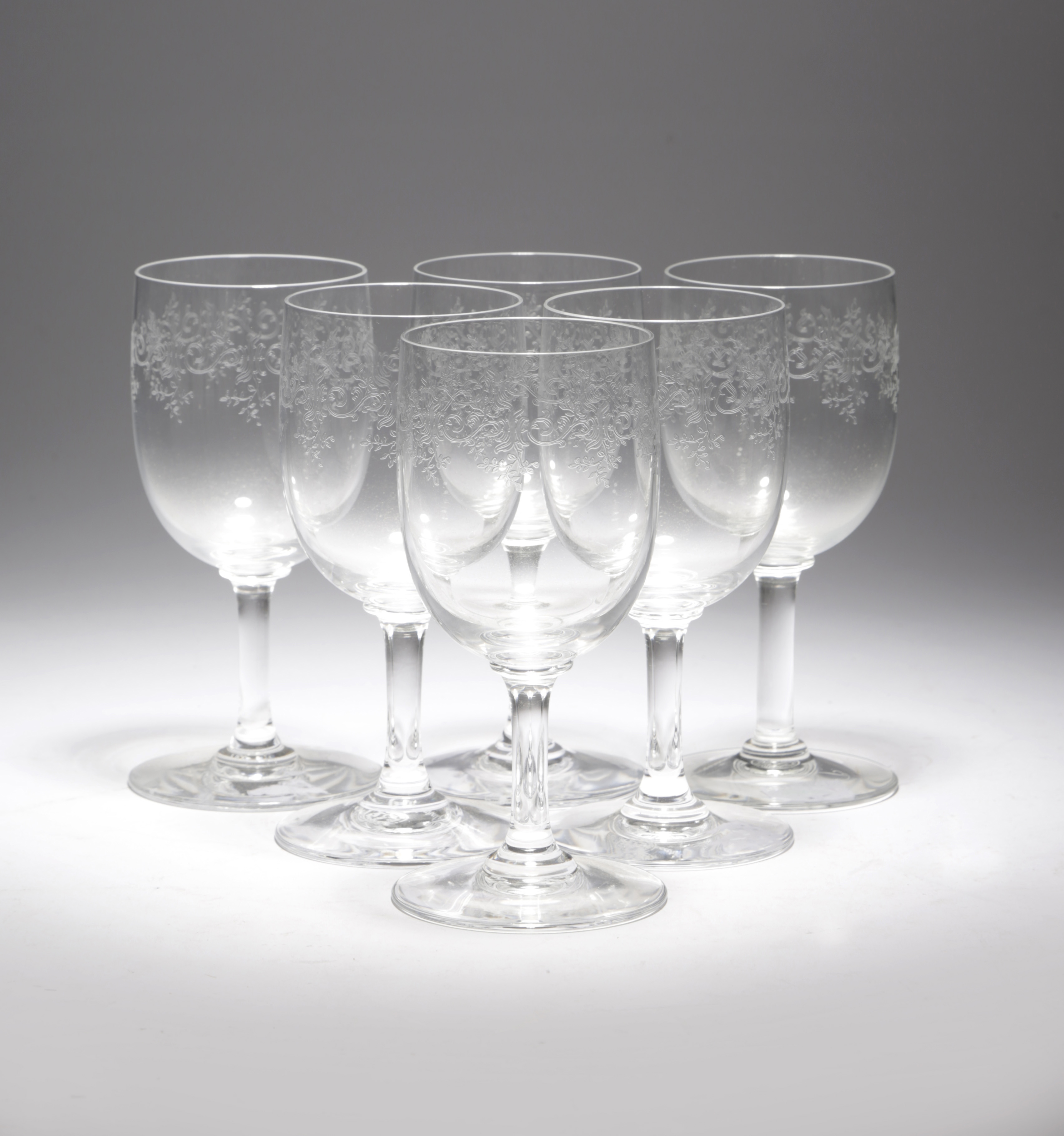 size no. 3, in the Sévigné pattern, with engraved scrolling foliage, with etched marks to the base (6)