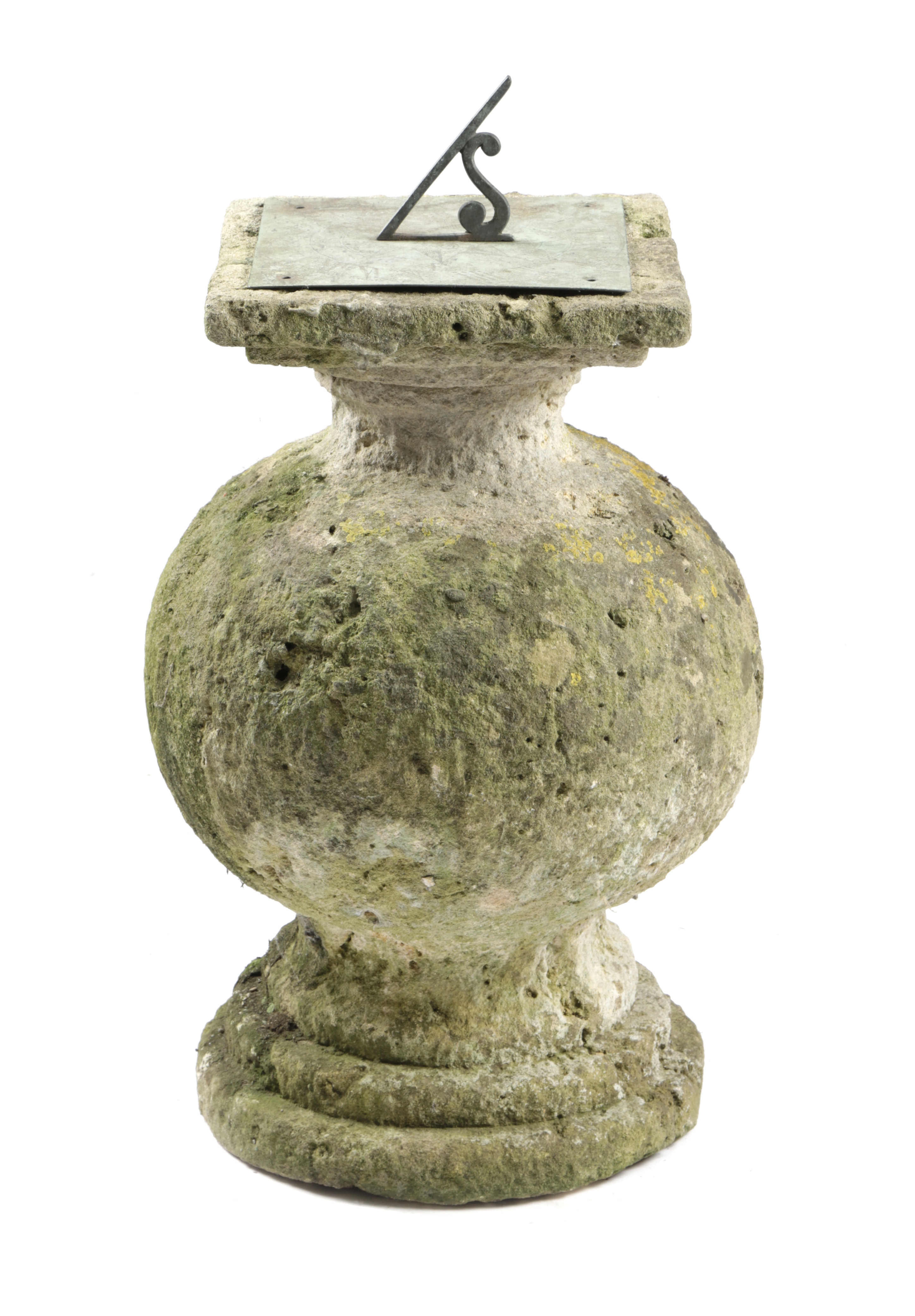 the square top above a spherical body and stepped circular foot, together with an 18th century style brass sundial (2)