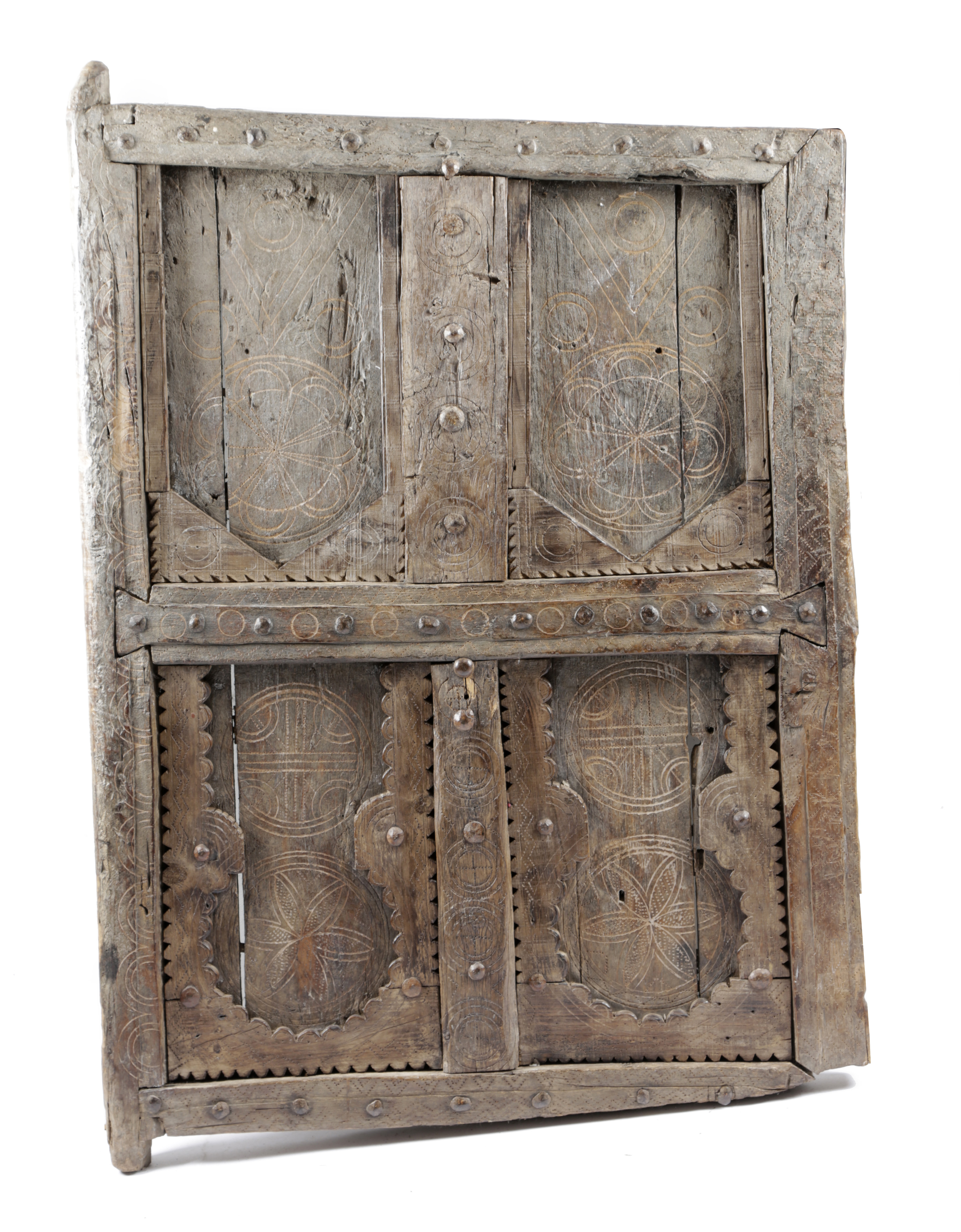 with four panels with carved arches and engraved rondel decoration