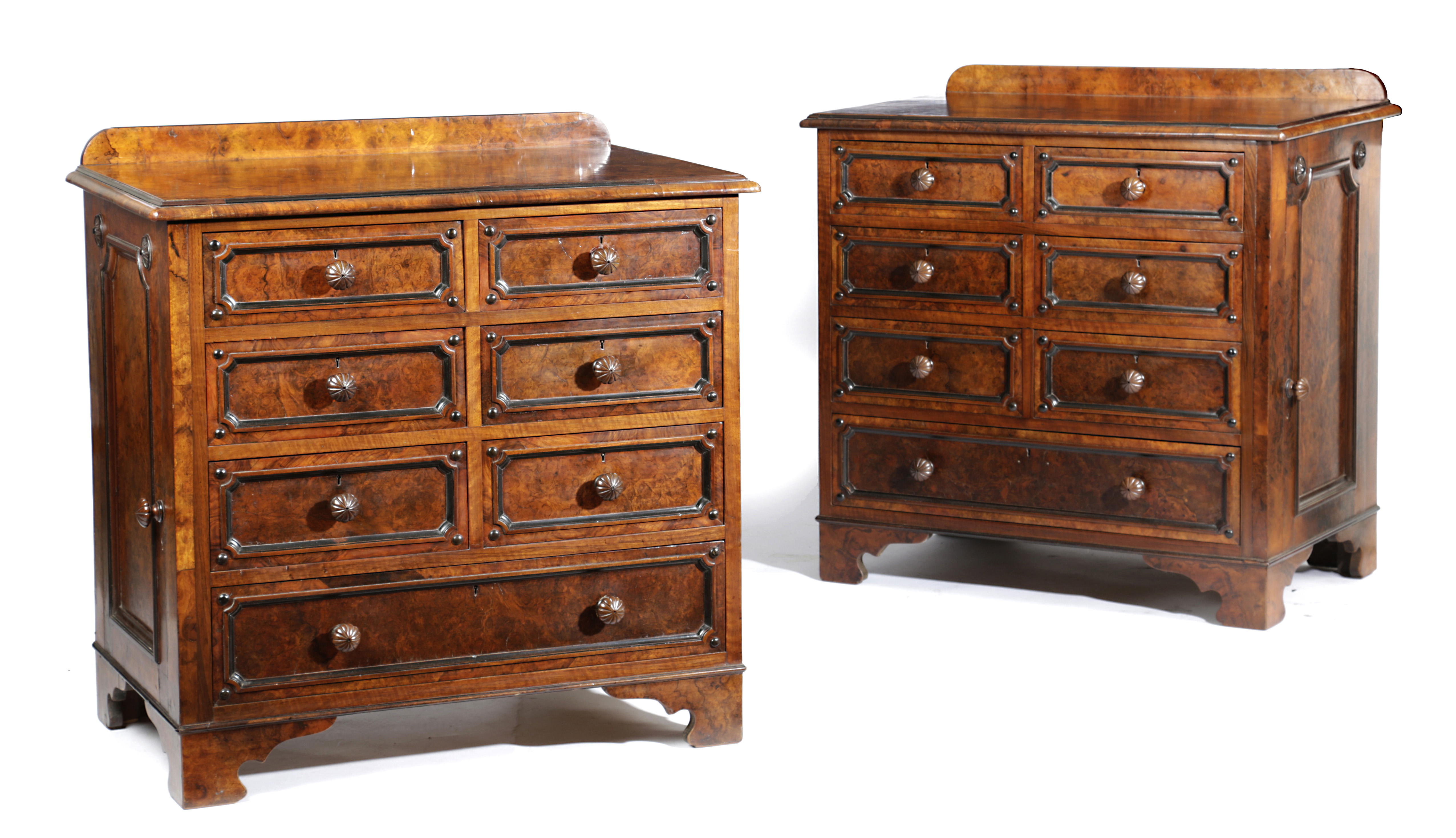 A PAIR OF LATE VICTORIAN BURR WALNUT CHESTS