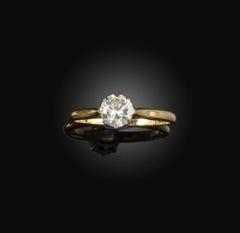 A diamond solitaire ring, set with a brilliant-cut diamond weighing approximately 0.60 carats, mounted in gold, size M, stamped 18CT PT, numbered 1188