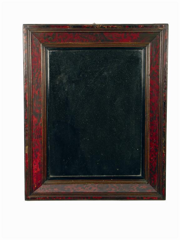A rectangular wall mirror, the sloping frame with tortoiseshell veneer and ebonised moulding, 32.5 x 26.25in (82.5 x 67cm)