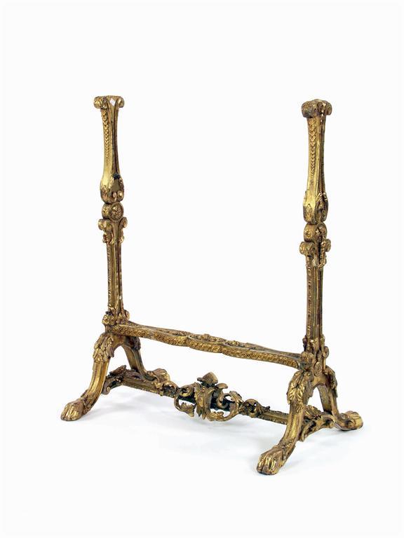 A 19th century giltwood and gesso cheval mirror frame, with foliage decoration, on paw feet, previously with castors, 34in (86cm) w.