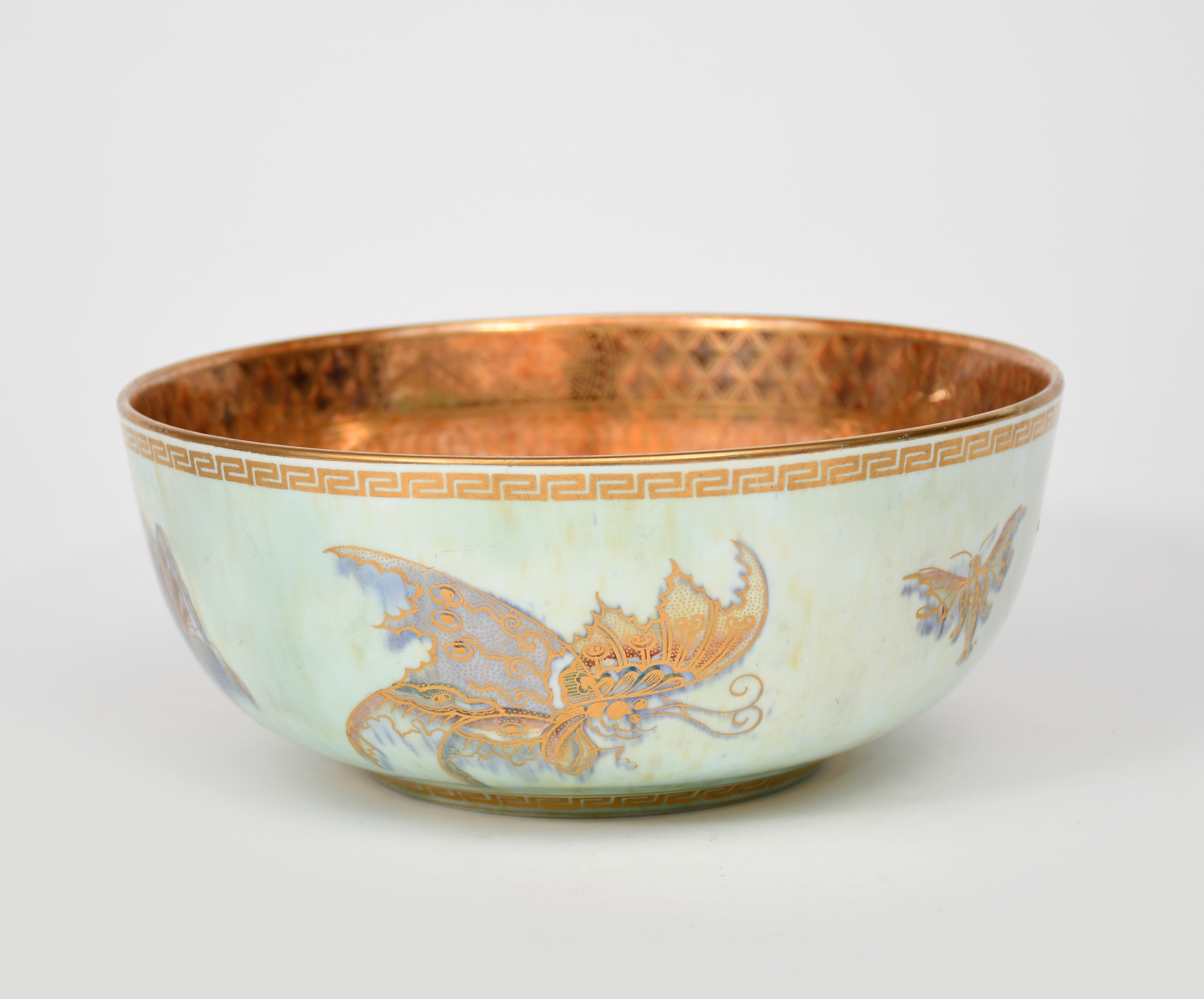 A Wedgwood Butterfly lustre bowl designed by Daisy Makeig-Jones, printed and painted in colours and