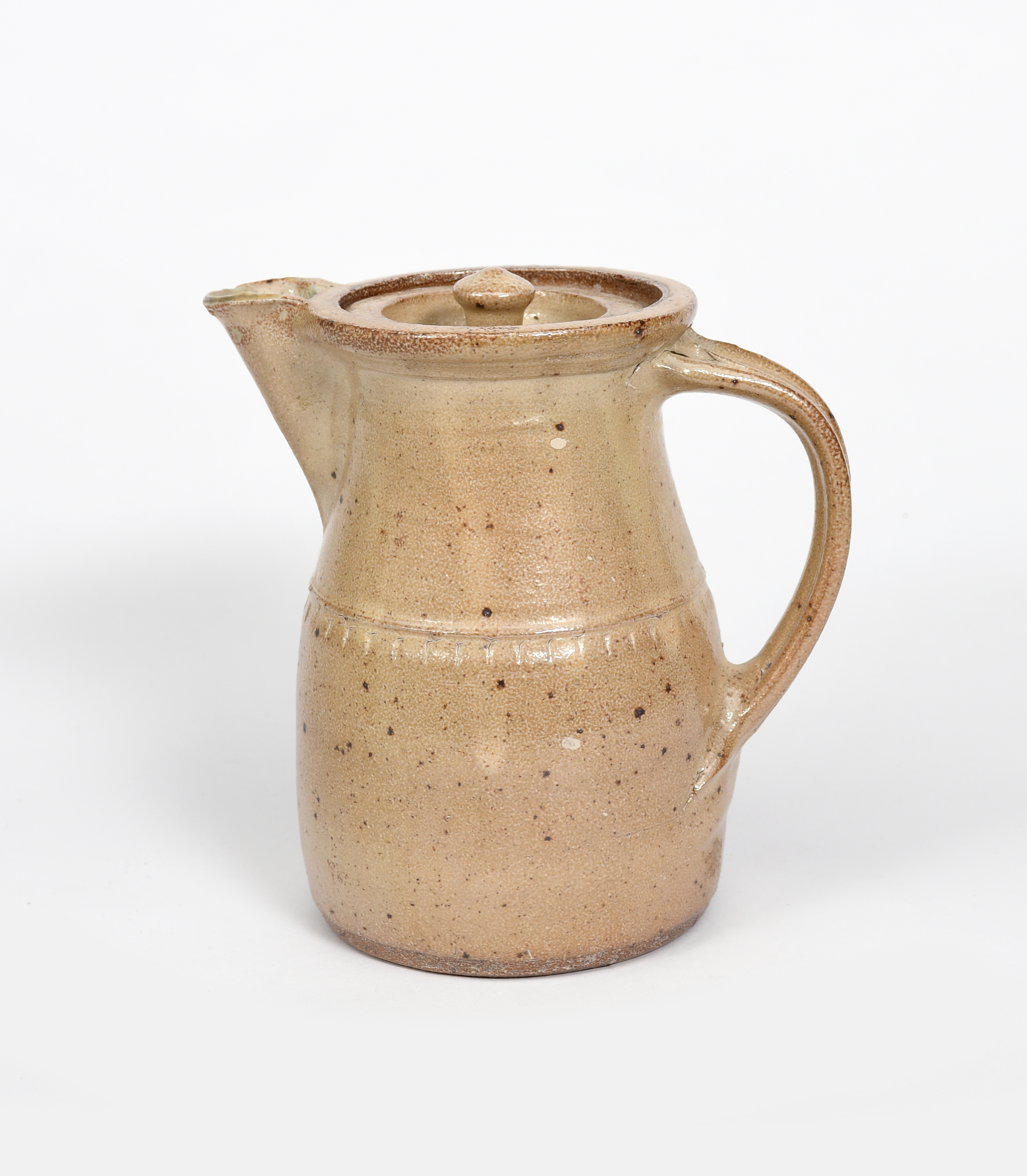 a salt-glaze stoneware coffee pot and cover, with simple chatter band,