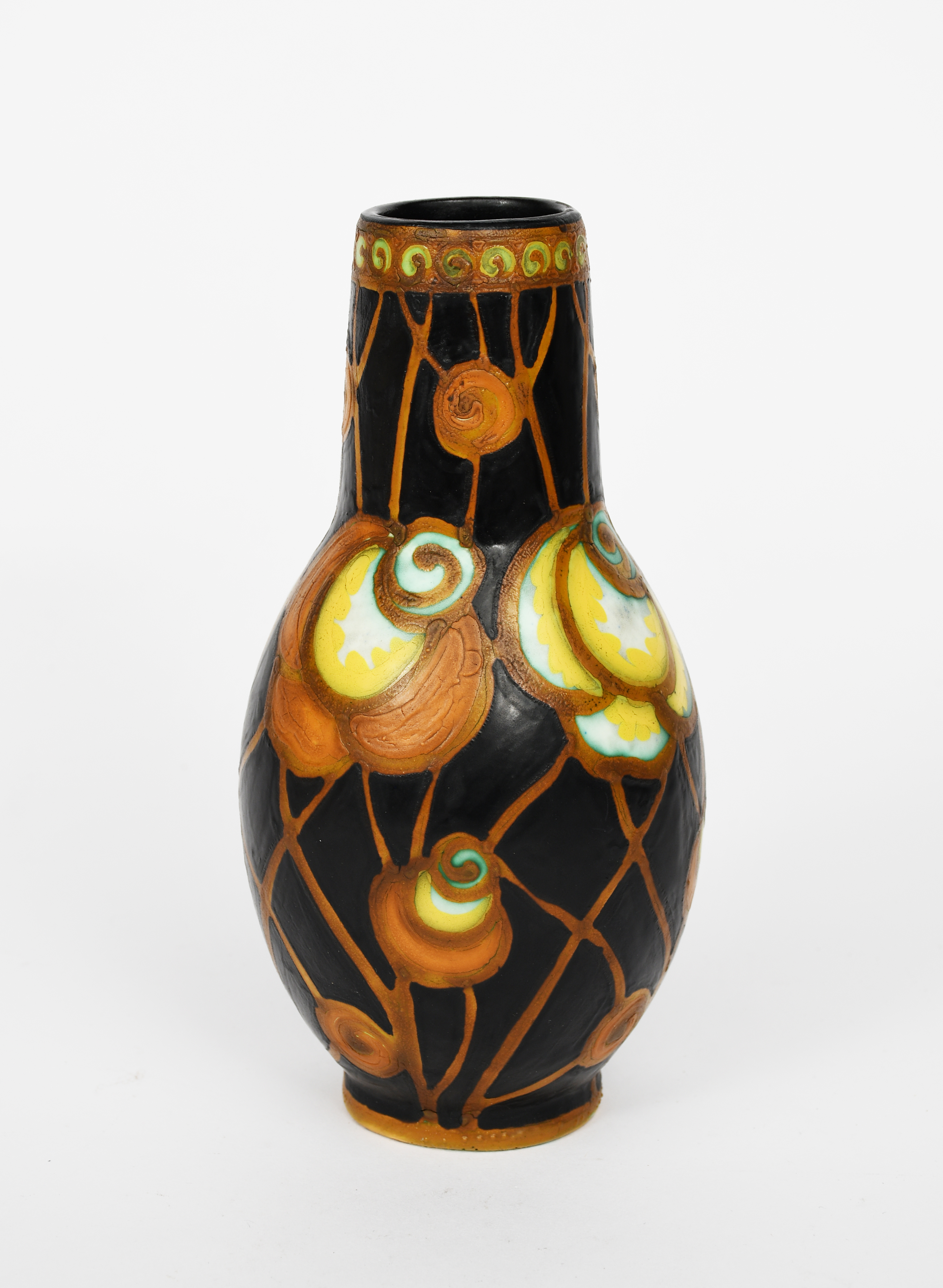 A Boch Freres Keramis vase designed by Charles Catteau, shouldered ovoid form with cylindrical neck,