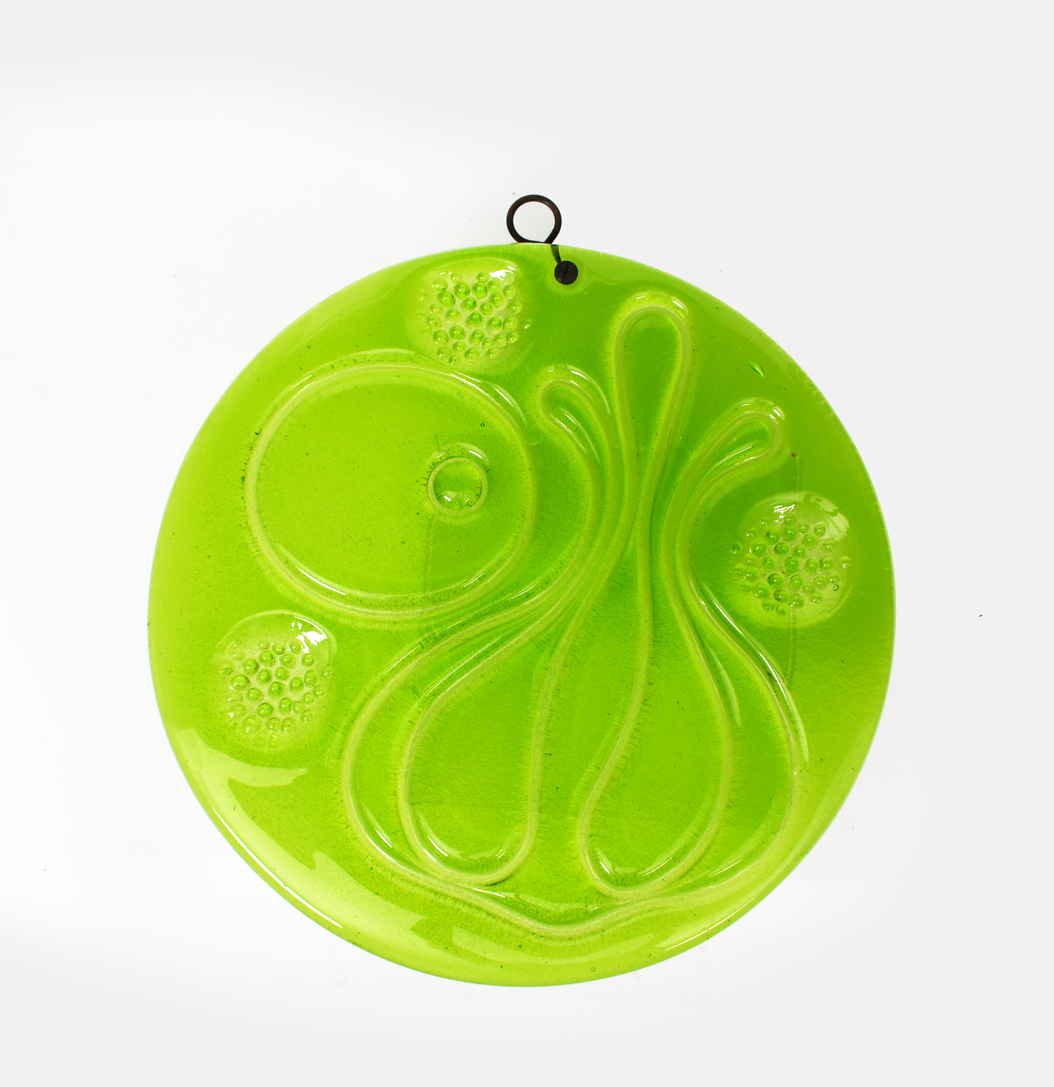 A set of four Holmegaard Season glass sun-catcher panels designed by Per Lutken, designed in 1975, each circular, cast in low relief, in original card boxes, unsigned, with certificates, 39.5cm. diam. (4)
