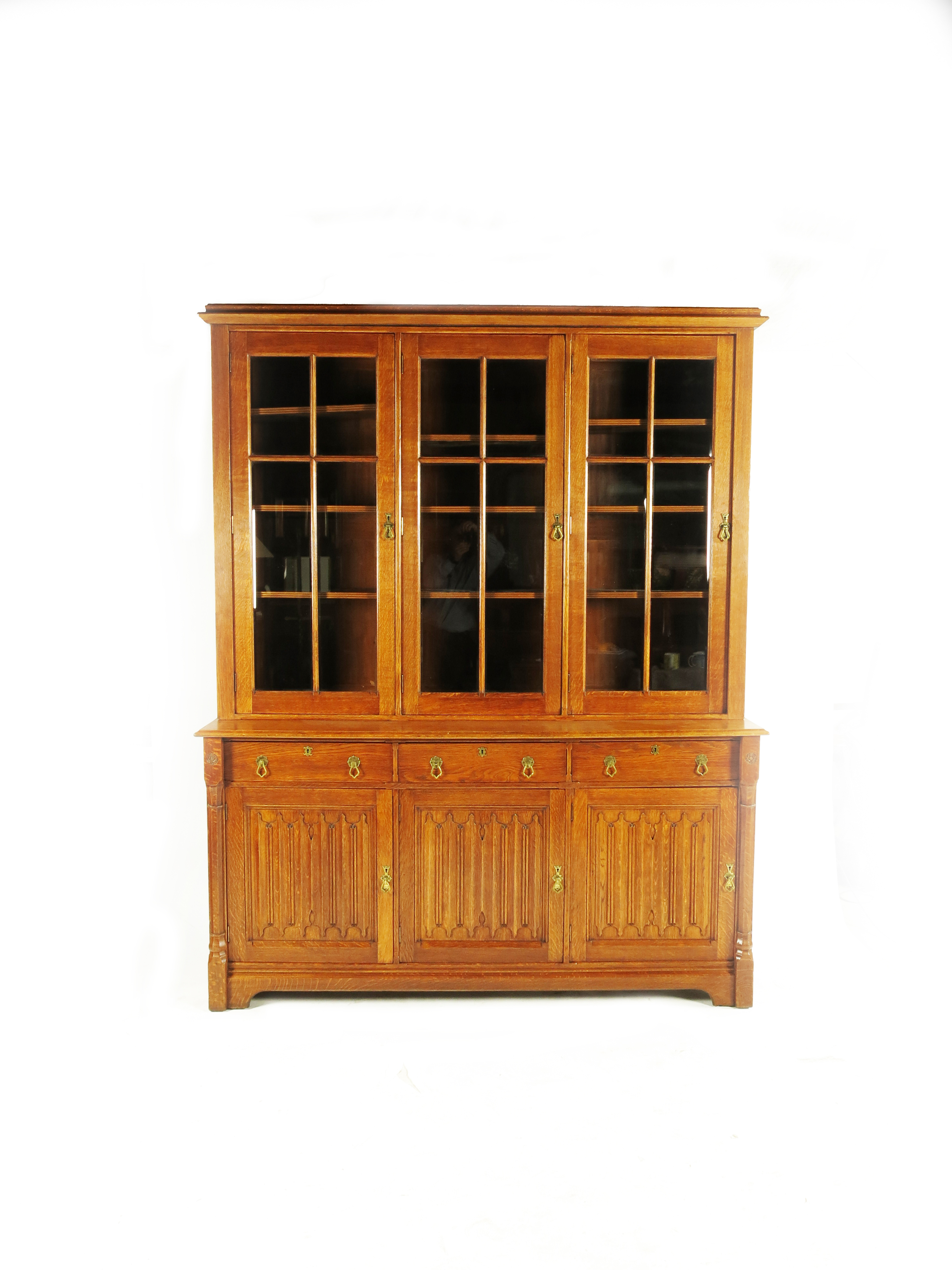 A large William Ingham oak glazed bookcase in the manner of A.W.N. Pugin, probably for Constantine