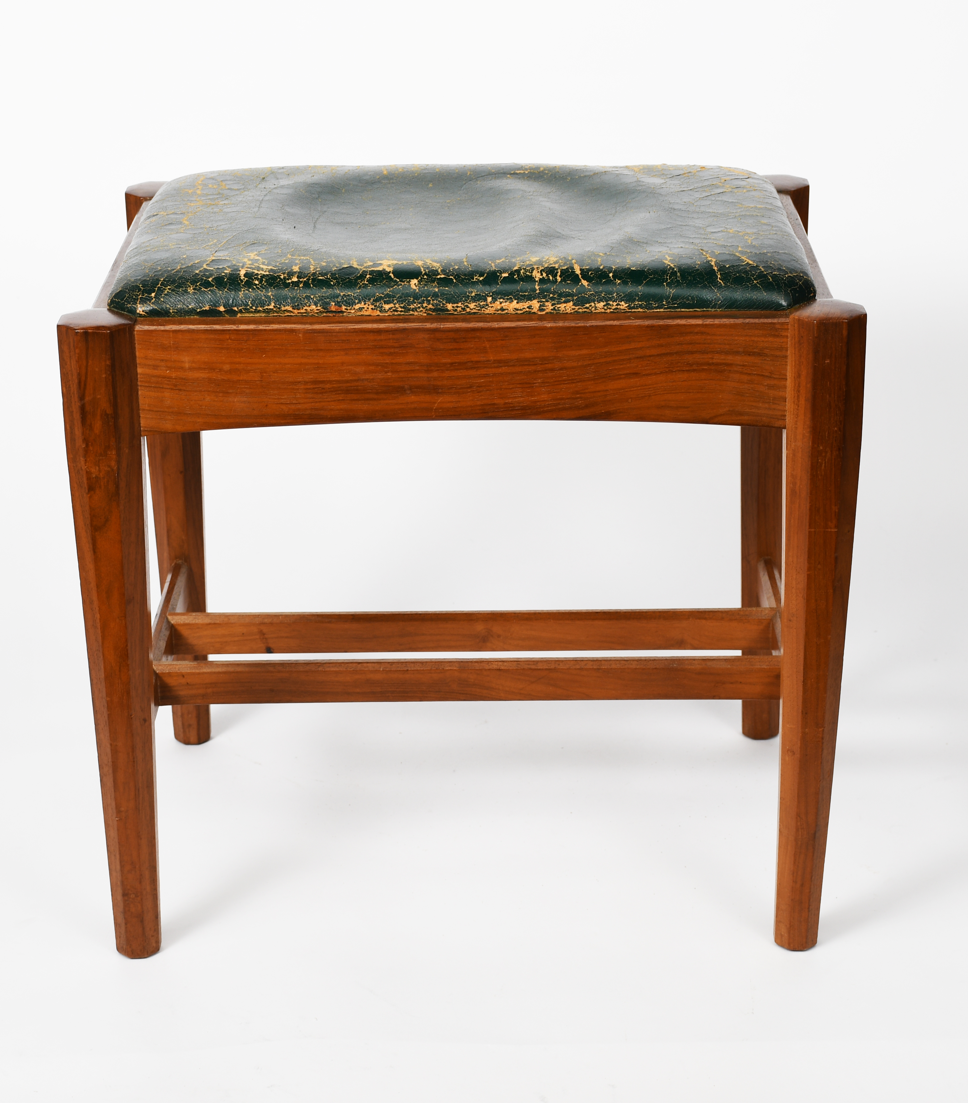 A Hugh Birkett walnut stool, rectangular section, on four tapering octagonal legs, with fitted, padded green seat pad, unsigned, 51 x 38.5cm, 47cm.high