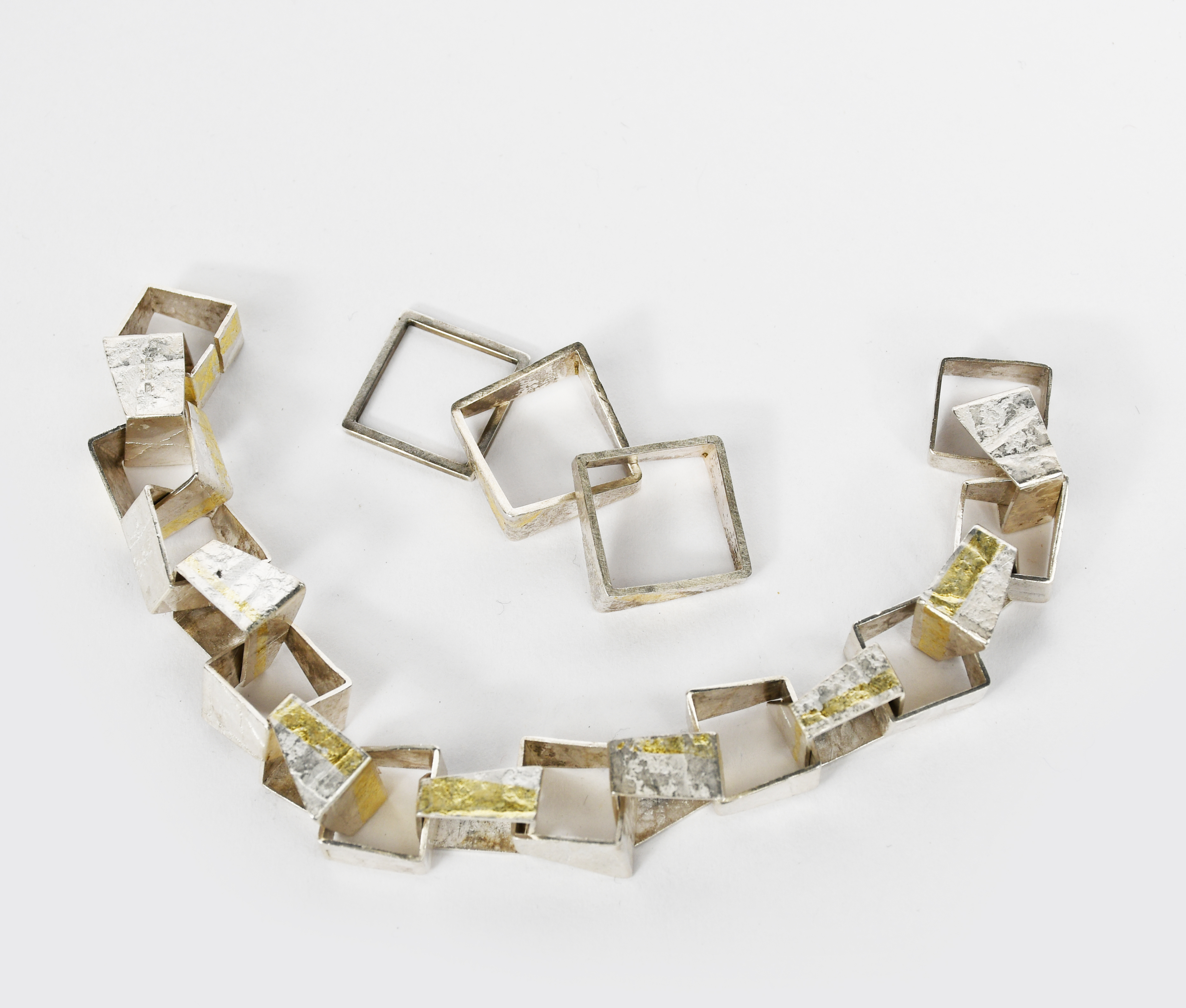 A Rhona McCallum silver link bracelet, square links, and a double stacking ring stamped marks, 20cm long (bracelet) (4)