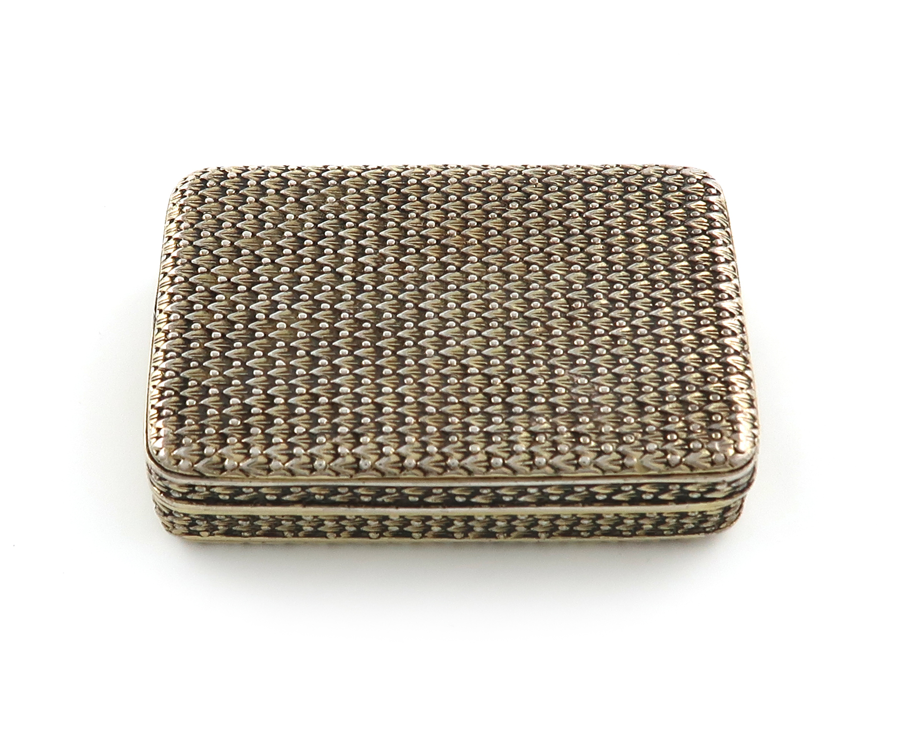 rectangular form, textured bead and chevron decoration, gilded interior, length 7cm, approx. weight 3.2oz.