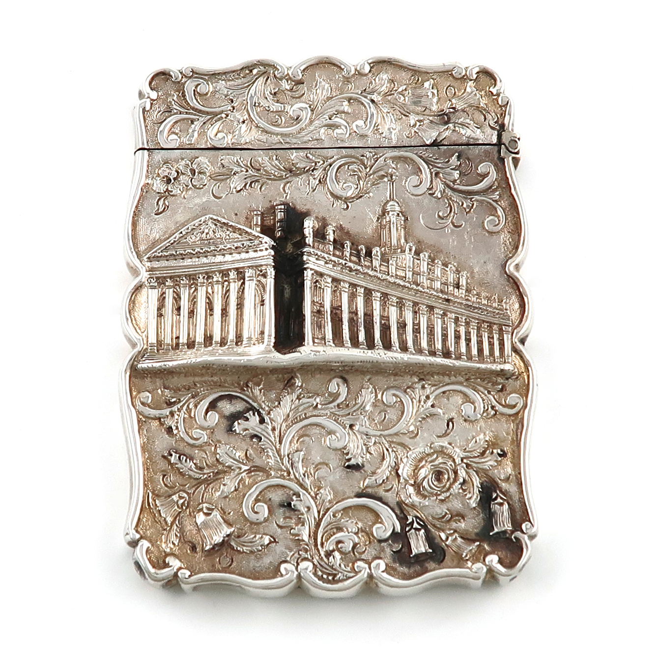 An early-Victorian silver 'Castle-top' card case, The Royal Exchange,
