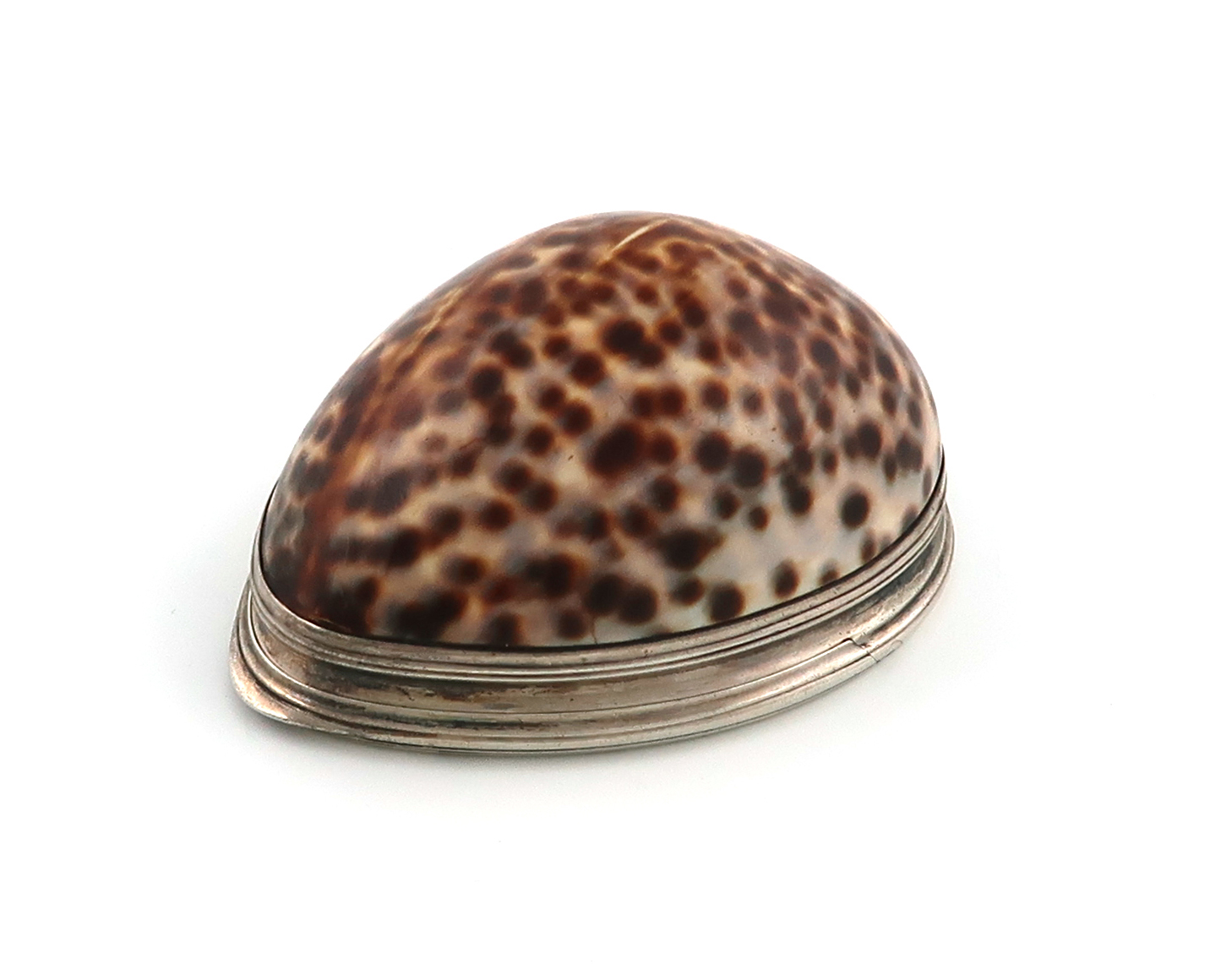 A George III silver-mounted cowrie shell snuff box,