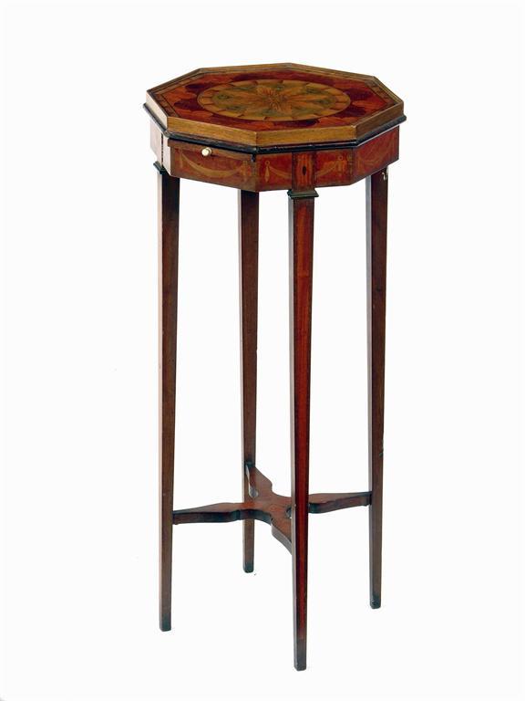 A late Victorian mahogany and marquetry urn stand