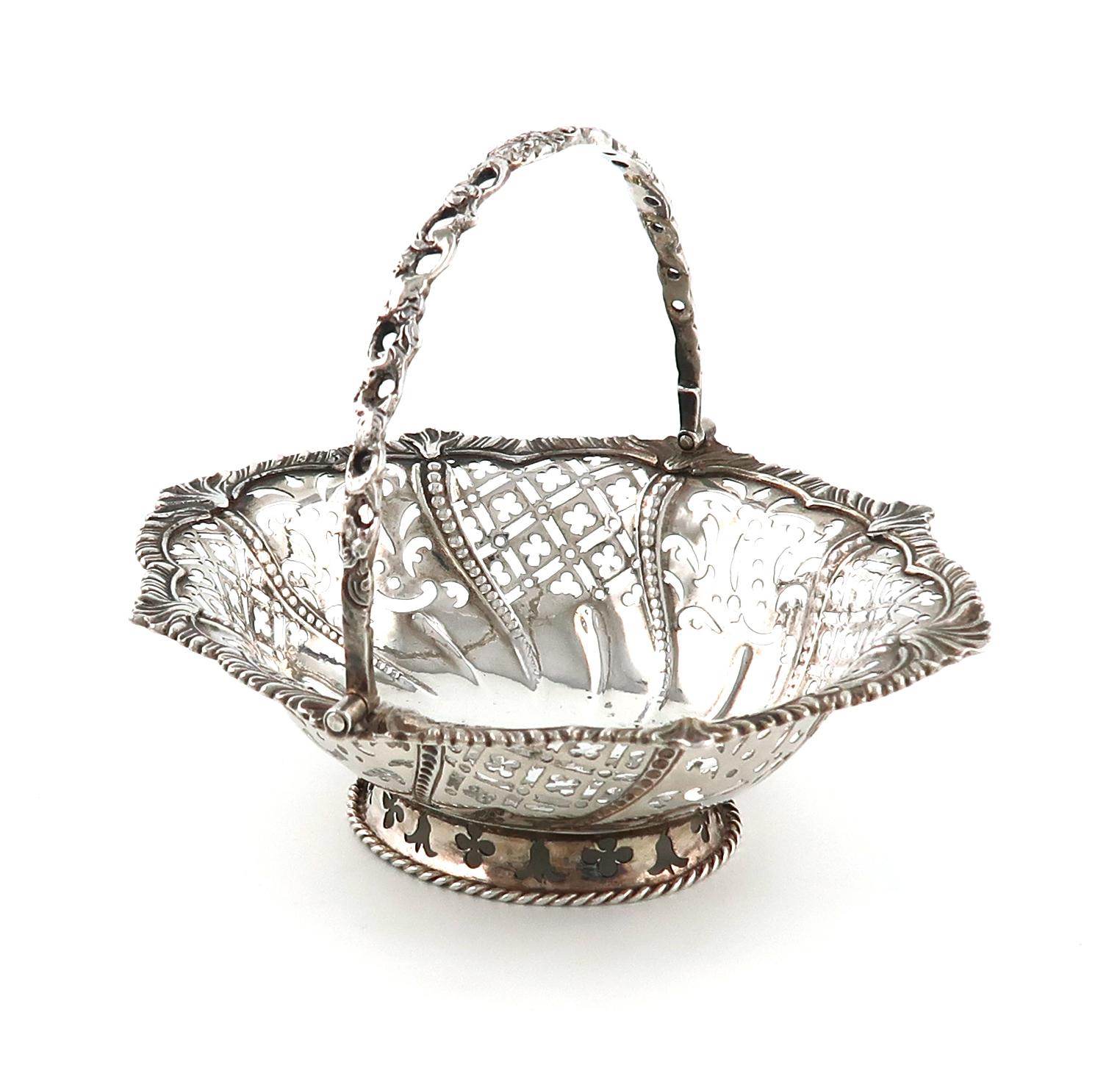 A George III silver swing-handled sweet meat basket,